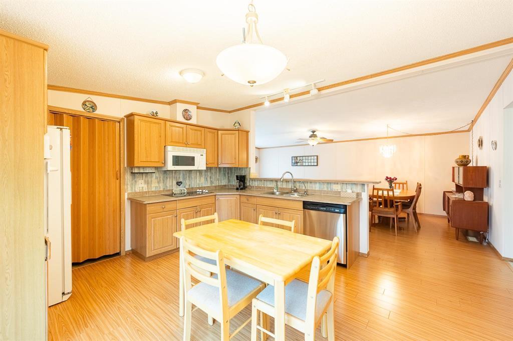 OUTSTANDING HOME, OUTSTANDING VALUE! Long time owners are selling their very cherished family home. This beautiful mobile home has been meticulously cared for & pride of ownership shines brightly throughout. The floorplan is 2nd to none where the eat-in kitchen, dining & living areas blend perfectly creating the very best use of living space possible. Her custom kitchen is bursting with high end cabinetry, storage, stainless steel appliances & more counter space than you’ll ever require. The primary bed, very generous in size, includes a sparkling 4 piece ensuite bath & complimented by 2 additional ample sized beds (or perhaps nursery or office). Additionally, you’ll discover a super convenient main floor laundry. The exterior of the home features a massive wrap around deck ideal for entertaining & family gatherings. Structurally the home presents as super solid, straight as an arrow & boasts 200 amp electrical service. All this and more awaits you and your family in one of the most sought after communities anywhere. Close to schools, shopping, recreation & everything else. DO NOT LET THIS BE THE GREAT ONE THAT GETS AWAY! Call your agent ASAP.