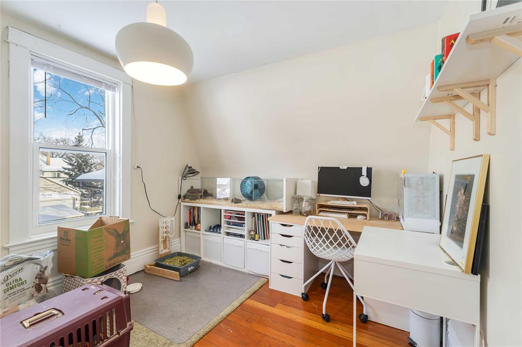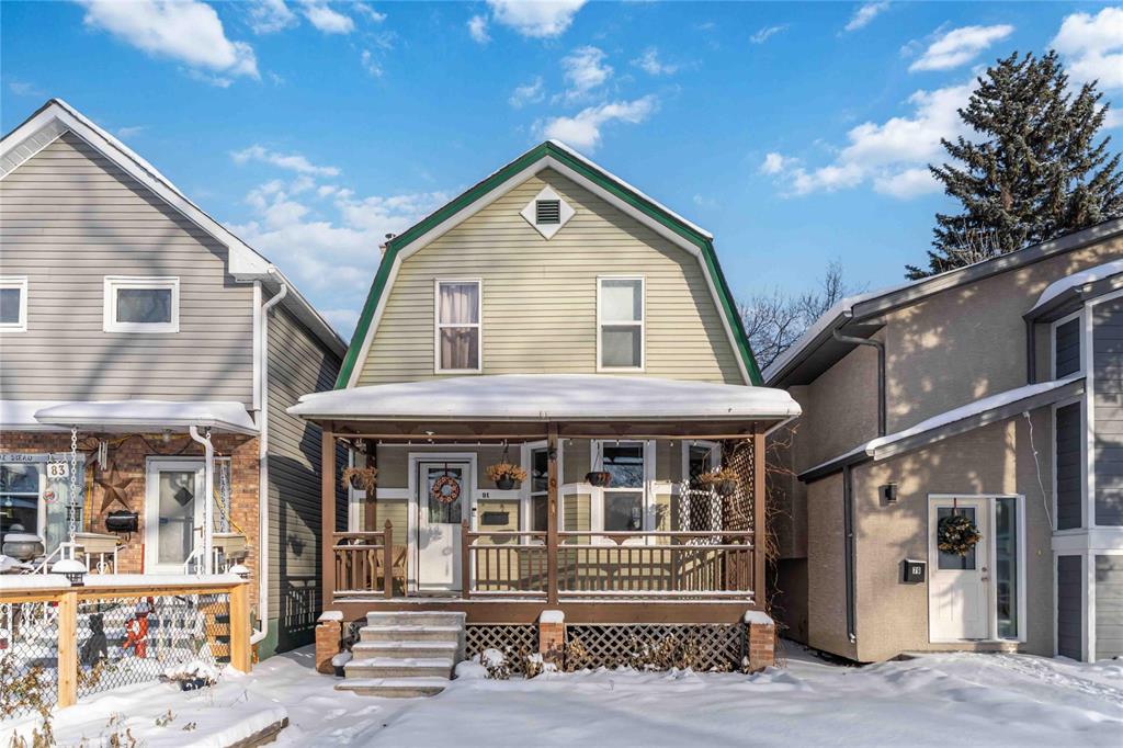 Showings now with offers presented Monday Dec 22nd evening. Scotia Heights! Step into timeless charm with this Dutch Colonial style beauty, brimming with character and modern updates. A cheerful façade with inviting curb appeal and a classic front veranda set the tone. Main floor highlights: Spacious front foyer, gleaming hardwood floors, a bright living room with bay window, and a generous dining room. The kitchen offers ample counter space, abundant cabinetry, pantry storage, and a convenient 2-piece guest powder room complete this level. Upstairs retreat: Three comfortable bedrooms, including a primary suite with huge walk-in closet. The remodelled full bath (2025) and updated windows throughout add comfort and peace of mind. Lower level: Open basement provides excellent storage, laundry area, and furnace space. Outdoor living: Off the kitchen, enjoy a cozy three-season porch leading to a deck, new stone patio, lawn, and vegetable garden. Privacy fencing surrounds the yard, creating a private oasis. Parking: Single-car garage plus extra parking at the back. This home is solid, straight, and full of personality — a colourful, happy place in a walkable neighbourhood, ready to welcome its next owner.