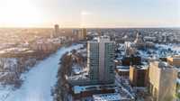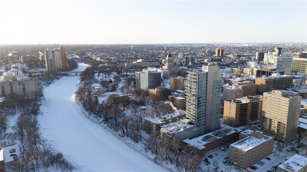 Showings start now. Offer as received. ** Open House Saturday 1pm to 2:30pm ** Perched on the 17th floor, this river-facing condo frames sweeping water and sunset views through walls of glass. The airy 2-bed, 2-bath layout centres around a chef’s kitchen with quartz counters, an oversized island with seating, and premium Jenn-Air/Fisher & Paykel appliances. This unit also features a serene primary bedroom features a walk-in closet and a spa-inspired 3-piece ensuite. A spacious second bedroom, a full 4-piece bath, in-suite laundry, and radiant heated hardwood/tile floors that round out the interior. Step outside to an oversized private balcony, or host on the building’s expansive 2,364 sq. ft. shared terrace capturing panoramic river vistas. This solid concrete residence also includes an elegant lounge (with kitchenette, fireplace, and pool table), a guest suite, a fitness studio, and secure heated above-ground parking plus a storage unit. Enjoy private access to the river walk and be just moments from The Forks and downtown conveniences. Pet-friendly and polished—elevated riverfront living, perfected. Book your private showing today!
