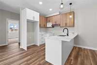 Showings start now. Offers as received. Come Visit our Show home at 804 Mclean Ave ,Tue -Wed-Thur (5pm to 7pm).Sat-Sun (2pm to 5pm).Charming, brand-new side-by-side bungalow offering great potential and modern comfort. Bright and inviting, home features a stylish kitchen with glossy cabinetry, Trey ceiling in M/bedroom, Side Entrance for basement,contemporary finishes, and a functional layout ideal for everyday living. The open living area is highlighted by beautiful vinyl plank flooring and abundant natural light, creating a warm and welcoming atmosphere. The full basement includes a convenient side entrance and rough-in plumbing for a future bathroom, providing excellent opportunity to customize additional living space, rental potential, or extended family use. Enjoy the added convenience of a double attached garage. Ideally located just minutes from parks, schools, public transit, and shopping, this home blends comfort, convenience, and long-term value. A great opportunity for first-time buyers, downsizers, or investors. Don’t miss your chance to make it your own. All dimensions are approximate (+/- jogs) and taken from builder plans.
