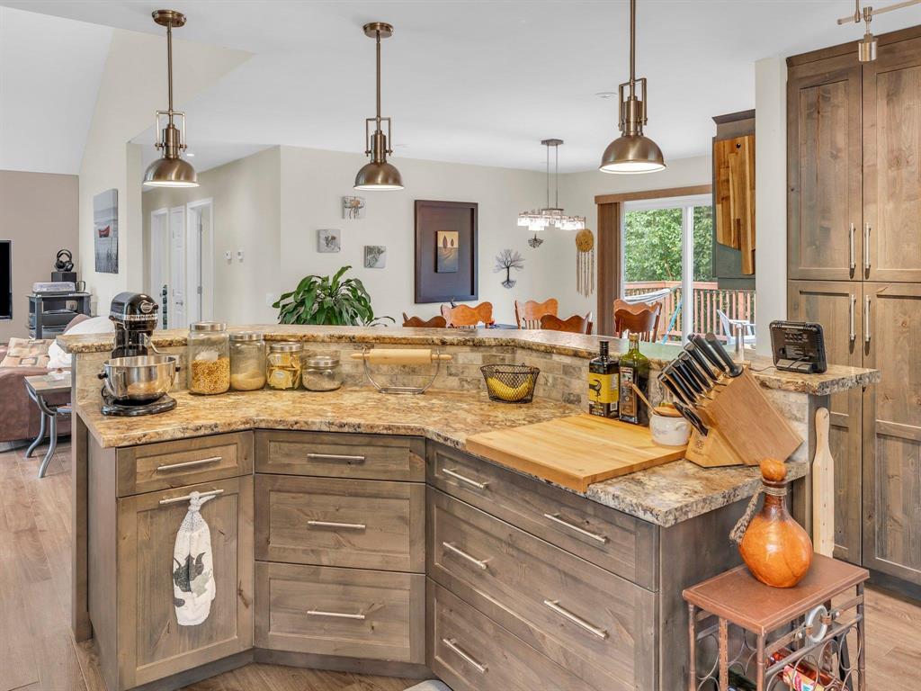 Offers as received. Welcome to 43 Ballyshannon Road! An exceptional year-round home with modern finishes and quality construction, built in 2014. Step in from the raised front porch to a spacious foyer and a stunning kitchen with built-in appliances, center island, stone backsplash, double sink overlooking the front deck, and ample storage. The open-concept living area features vaulted ceilings and a cozy wood-burning fireplace with stone surround, flowing into a bright dining space with sliding doors to a large back deck—perfect for BBQ season. The primary bedroom offers two closets and a private ensuite with a steam shower and skylight. Two additional bedrooms and a full bath provide room for family or guests. A laundry room leads to the expansive backyard and a 30x24 heated shop with in-floor heating. For guests or extra income, enjoy the private loft suite above the garage, complete with its own kitchenette, living and dining areas, bathroom, and driveway. All just minutes from the beach! Enjoy peaceful living in a scenic, friendly neighborhood with plenty of outdoor space for entertaining or relaxing. Truly a rare find in a prime location!