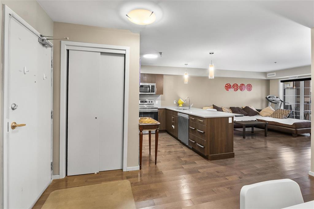 Well maintained 2 bedroom condo unit offering 967 sq ft of functional living space in the established Bridgwater Forest community. This third-floor unit features an open-concept layout with a spacious living and dining area and hardwood flooring throughout, creating a cohesive and low-maintenance interior.The kitchen is efficiently designed with quality cabinetry, stone countertops, tile backsplash, stainless steel appliances, and in-suite laundry. Both bedrooms are well proportioned with good closet space. A private balcony overlooks the interior courtyard and provides a quiet outdoor space. The unit includes one heated underground parking stall and a dedicated storage locker, both conveniently located near the elevator. The professionally managed building offers amenities such as a fitness room, common area, and visitor parking. Condo fees include all major utilities. Conveniently located near public transit, shopping, parks, and minutes from the University of Manitoba. This move-in-ready, turn-key condo is well suited for owner-occupiers or investors seeking low-maintenance living.