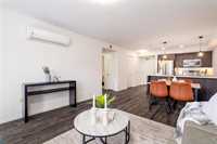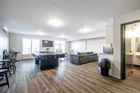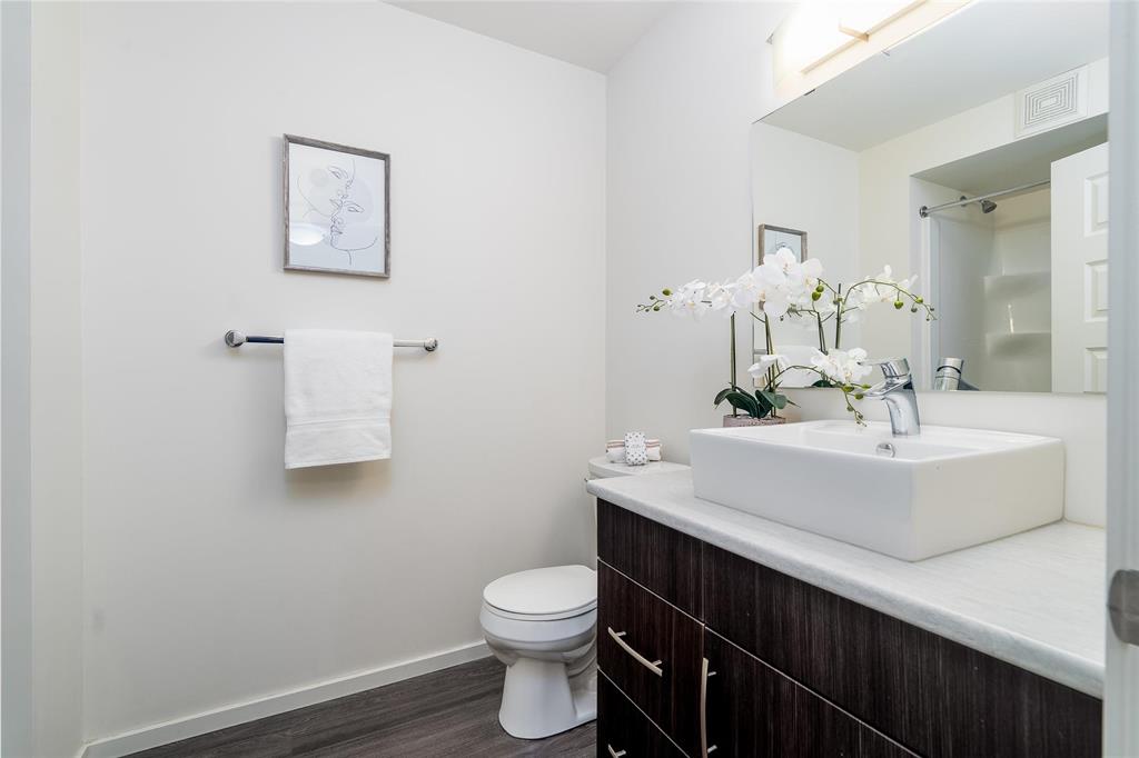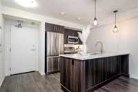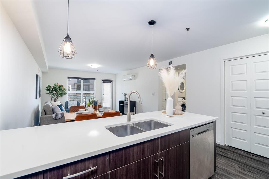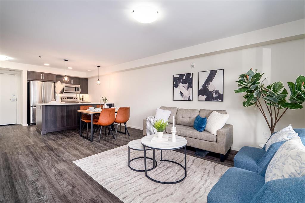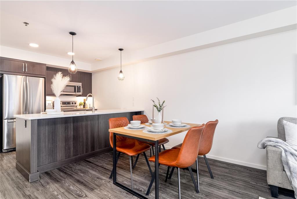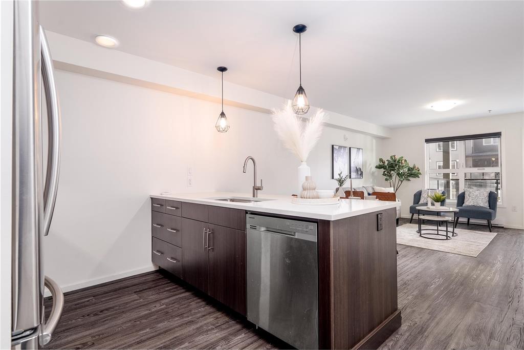 Welcome to Hudson Condominiums in Devonshire Village! This modern, well maintained, ground floor previous display suite features 2 bedrooms, 1 bathroom, a spacious open concept living/dining room with vinyl plank flooring and in-suite laundry. The sleek kitchen has a peninsula, stainless steel appliances, quartz countertops and ample cabinet space. Amenities include gym and party room. This pet friendly building is conveniently located minutes from Costco in Regent, restaurants, Kildonan Place, schools, public transportation is steps away and more! Book a showing today.