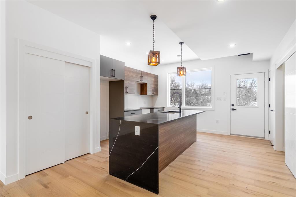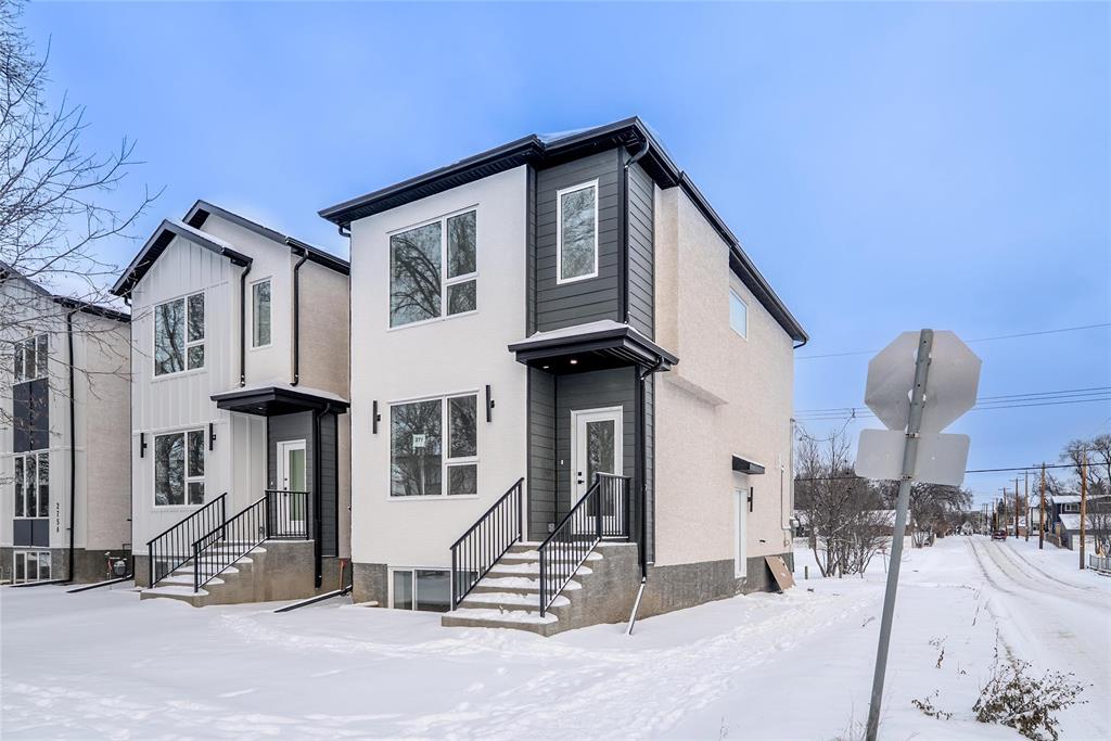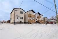 Located in the Deer Lodge community, close to Assiniboine Park, Polo Park Shopping Centre, and Portage Avenue, with easy access to public transit, Grace Hospital, and major commuter routes to downtown. This contemporary infill features 3 bedrooms in the primary suite, filled with natural light, a sleek ensuite with modern countertops, 2.5 baths, and convenient upper-level laundry. The main floor offers a spacious living and dining combination paired with a modern kitchen with balanced colour tones. The lower-level secondary suite includes 2 bedrooms, a 4-piece bathroom, in-suite laundry, and an open-concept living and kitchen layout—ideal for extended family or rental income. The property backs onto a creek with no rear neighbours. Stainless steel appliances are included for both units. Some photos have been virtually staged.