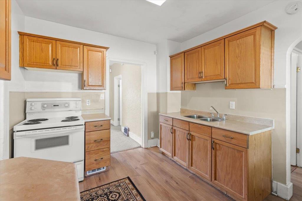 CALLING ALL INVESTORS! This spacious 5 bedroom, 1.5 bath home offers fantastic rental potential. Previously rented at $1500 + utilities for 4 years straight! Easy to accommodate large families - this could be your new home! Step through the front porch into the functional living room that flows into the formal dining area. The kitchen provides ample cabinet and counter space. 2 generously sized bedrooms, a 2pc bath and convenient main floor laundry complete the main floor. Upstairs, you'll find 2 large and versatile flex spaces - ideal for a family room, office, play area, or even extra bedrooms - plus 2 more carpeted bedrooms, a 4pc bath, and tons of storage. Full high and dry basement features a 5th bedroom (window does not meet egress), HE furnace ('17) and newer HWT ('18). The back porch leads to a large, fully fenced yard with a parking pad and potential for a future garage. PVC windows throughout (except the porches), newer shingles ('18). A solid opportunity to build equity or expand your rental portfolio! **Some photos are virtually staged, and noted if so**