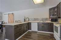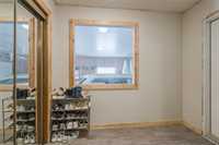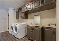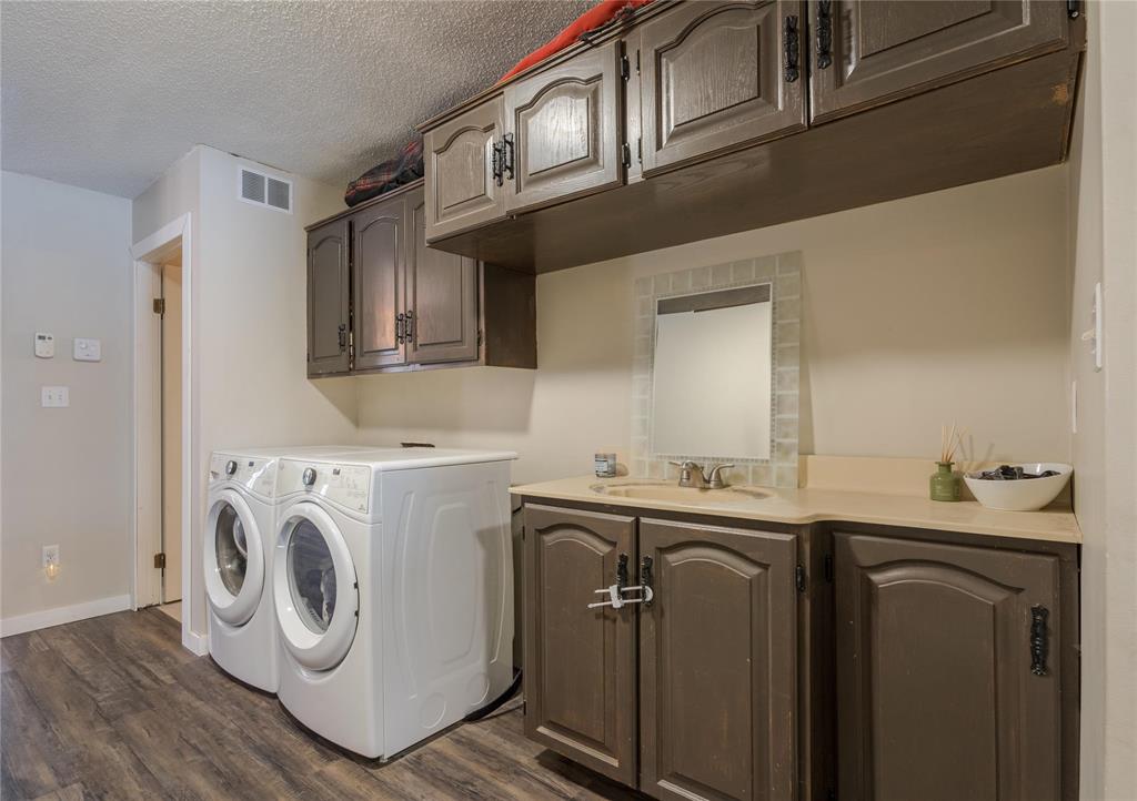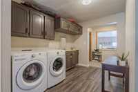 Extra wide hallway has extra storage as well as conveniently located laundry area. The back entrance includes a handy storage closet.