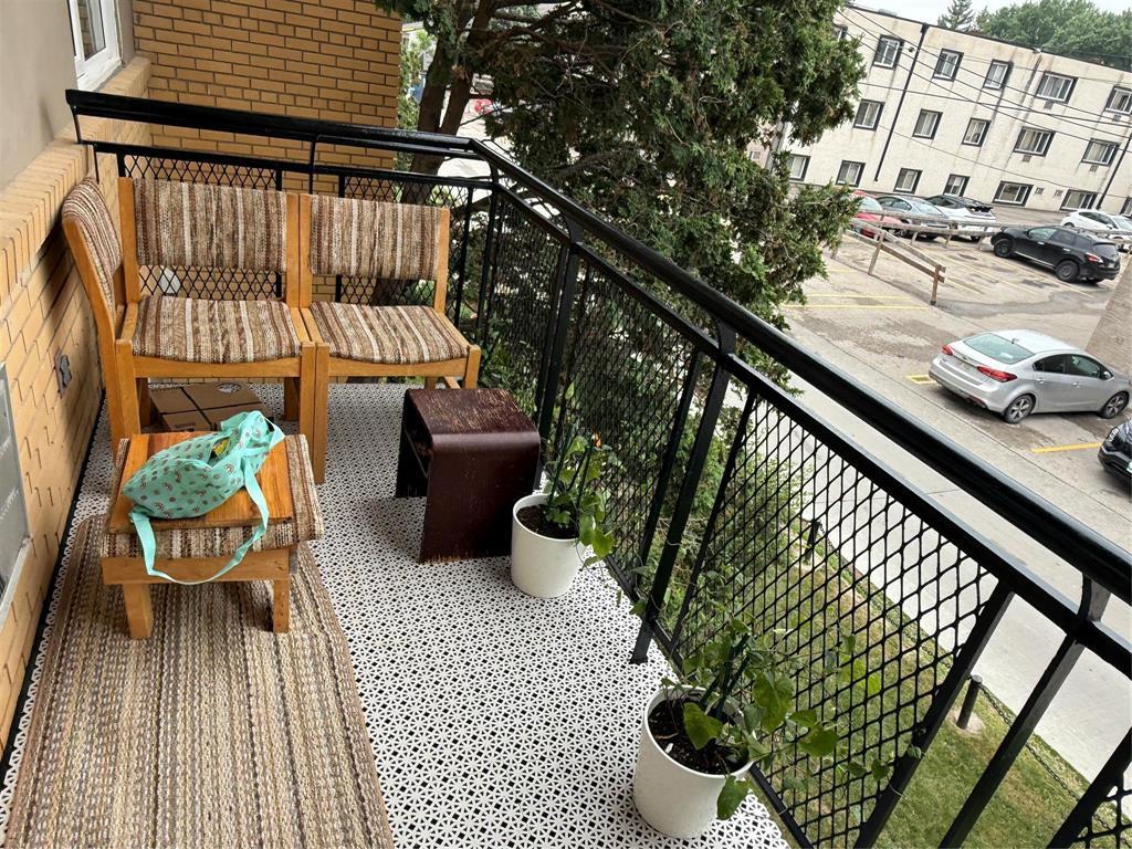 Offers anytime! Do not miss this great opportunity in the amazing neighbourhood of River Heights - First time home buyer, accommodation for your University child, Investment income, Downsizing, Reno and Sell . . . Many options with this great 2 Bedroom apartment condo. From the front entry, you will be captivated by the early 60s vibe with an abundance of windows in the open entry, with a staircase leading to the upper floors. Beautiful and bright with large updated windows that allow the sunshine to illuminate this second floor END UNIT. Grow plants, tomatoes, herbs, etc on the West-facing balcony, and relax in the evening with a glass of wine! You will love the spacious layout with 1065 Sq Ft of living space. The semi-open concept living area is roomy with a large central livingroom having the kitchen and formal dining room to one side and the 2 bedrroms and bathroom on the other side. The bedrooms are both impressive in size and have large north facing updated windows. No need to load a card or save your coins with the in-suite laundry! PET-FRIENDLY. Close to schools, bus service, and parks. No disappointments here!
