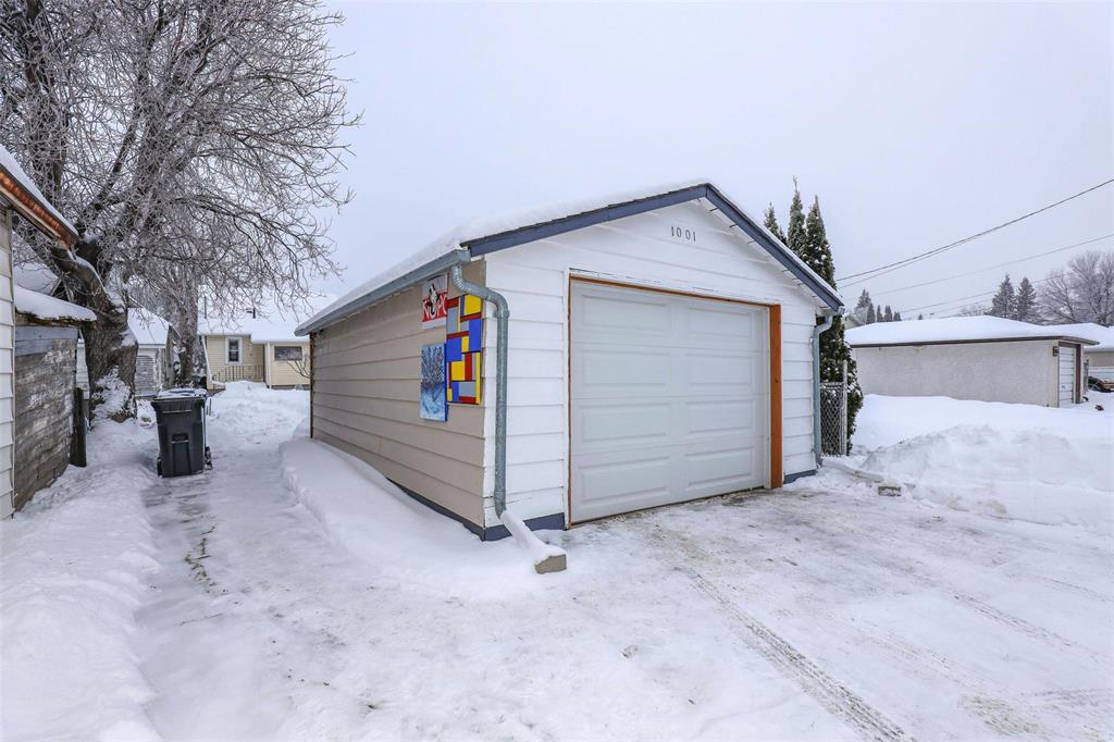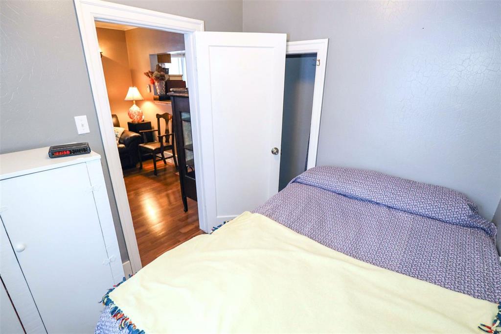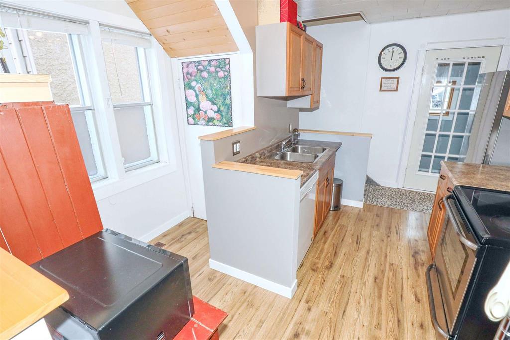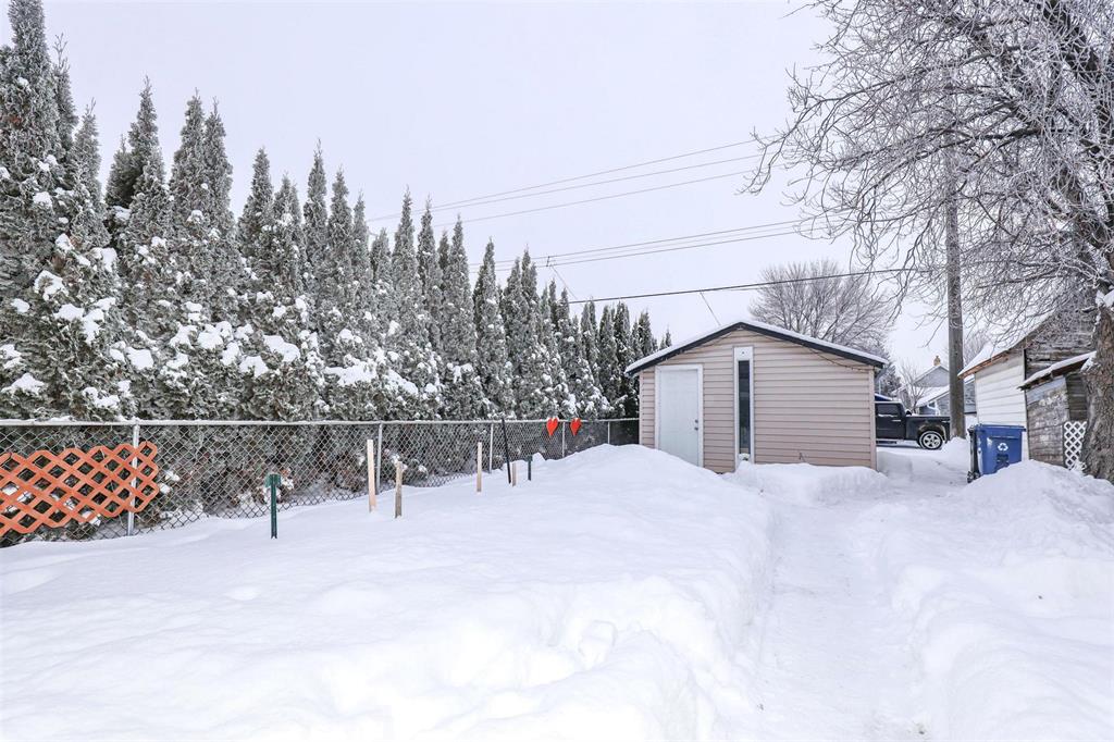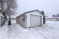 Well-maintained and adorable 777 sq ft turnkey 1½-storey 3 bedroom home situated on a quiet block with a deep lot featuring newer trees, shrubs, and a garden area, plus an oversized single garage. The main floor offers a spacious living room open to the kitchen—perfect for entertaining. A huge upper loft provides flexible space, complemented by an upgraded 4-piece bathroom with tiled flooring. Numerous updates include house shingles (2017), garage shingles (2023), high-efficiency furnace, updated plumbing, insulation, sump pump (2022), flooring, a newer overhead garage door, and fresh paint. Low-maintenance exterior with aluminum soffits and fascia, central A/C, and appliances included. Won’t last!