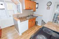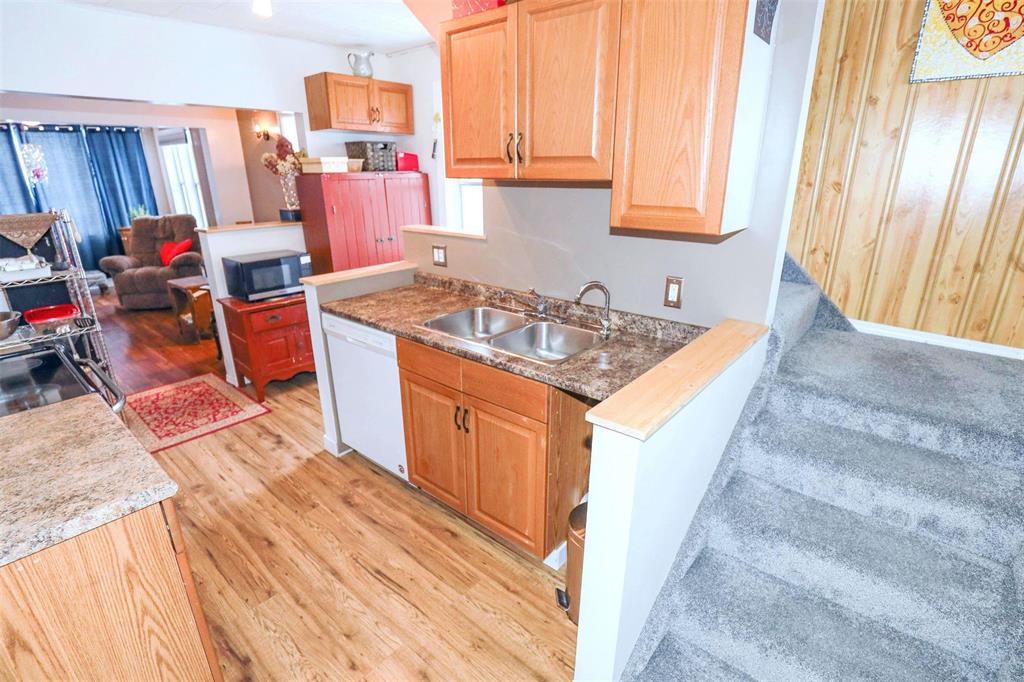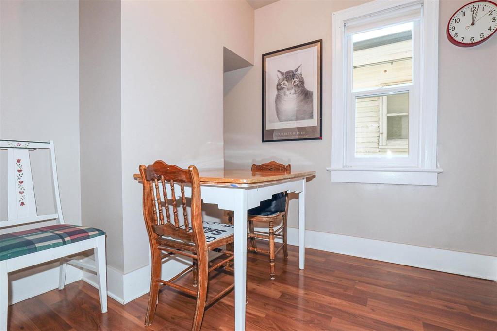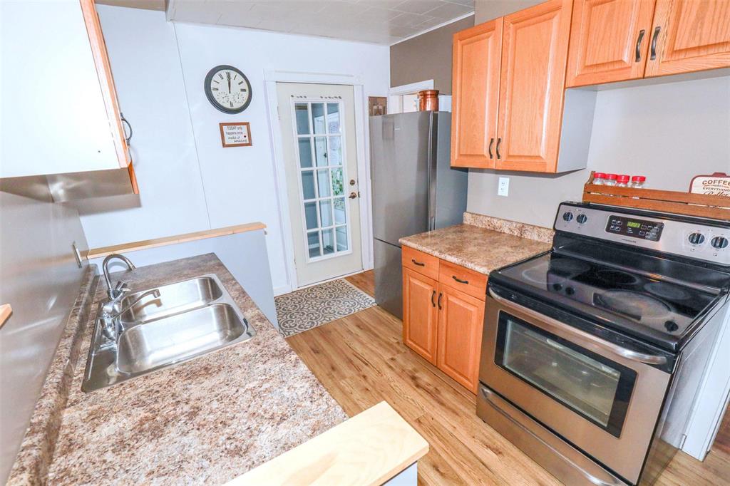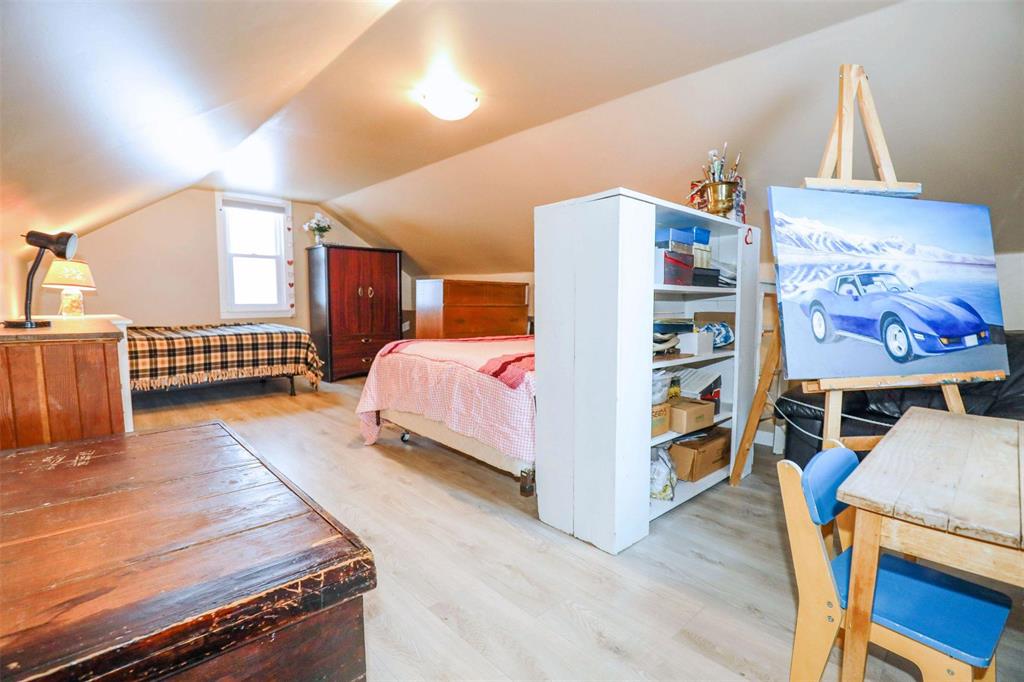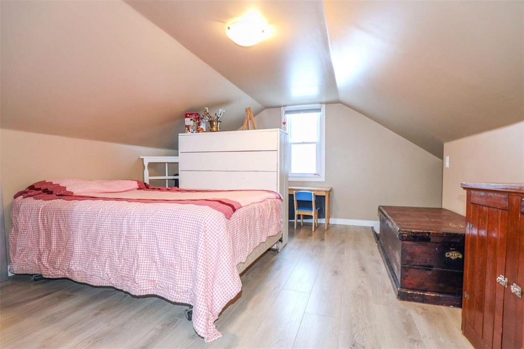 Well-maintained and adorable 777 sq ft turnkey 1½-storey 3 bedroom home situated on a quiet block with a deep lot featuring newer trees, shrubs, and a garden area, plus an oversized single garage. The main floor offers a spacious living room open to the kitchen—perfect for entertaining. A huge upper loft provides flexible space, complemented by an upgraded 4-piece bathroom with tiled flooring. Numerous updates include house shingles (2017), garage shingles (2023), high-efficiency furnace, updated plumbing, insulation, sump pump (2022), flooring, a newer overhead garage door, and fresh paint. Low-maintenance exterior with aluminum soffits and fascia, central A/C, and appliances included. Won’t last!