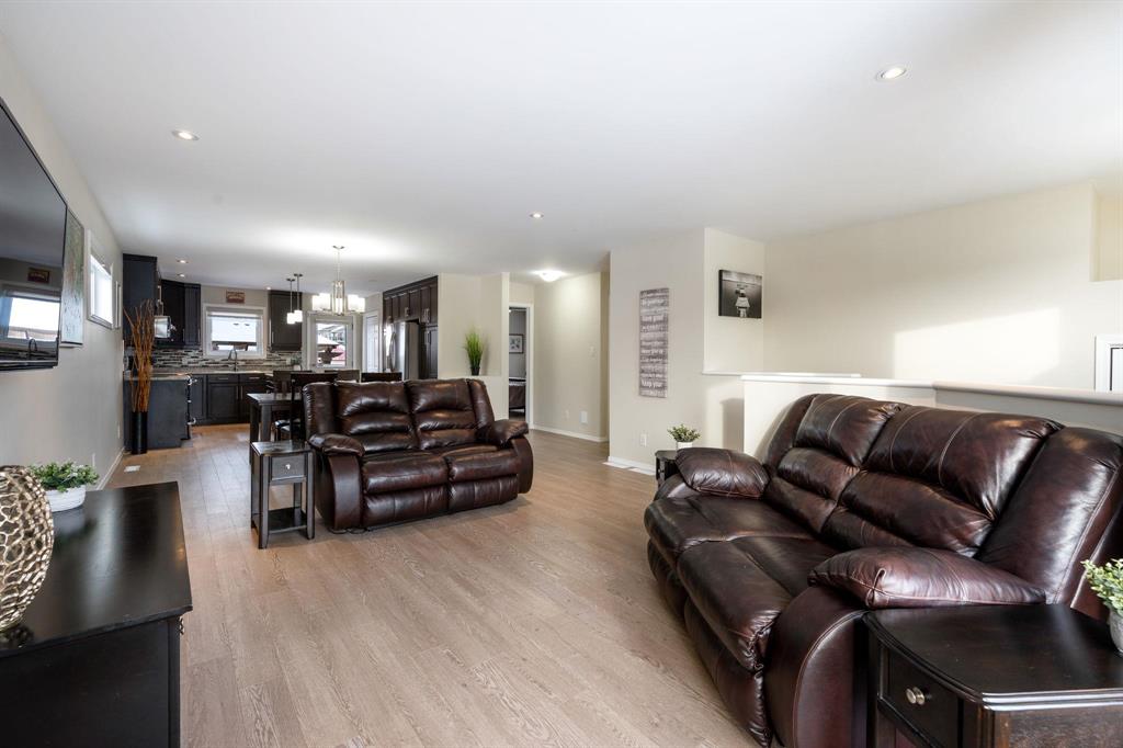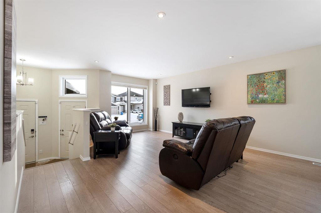 Showings start January 22nd, Offers in by 5:00pm January 27th. Nearly 1,300 square feet of comfortable living space is offered in this modern Crocus Meadows bungalow. The main floor features a spacious open-concept living and dining area, a generous island kitchen with ample storage and stainless steel appliances, a sizeable primary bedroom with walk-in closet and en-suite bath, plus two additional bedrooms and a four-piece main bath. The unfinished lower level offers excellent potential for a beautiful open living or entertainment space. Additional highlights include a concrete driveway leading to a double attached garage and a landscaped backyard complete with an oversized deck, pergola, and pressure-treated fencing, Gemstone Lighting, custom Hunter Douglas Blinds, steel beam in the basement and more! Located in the family-friendly community of Crocus Meadows, this home is close to shopping, restaurants, schools, and other everyday conveniences.