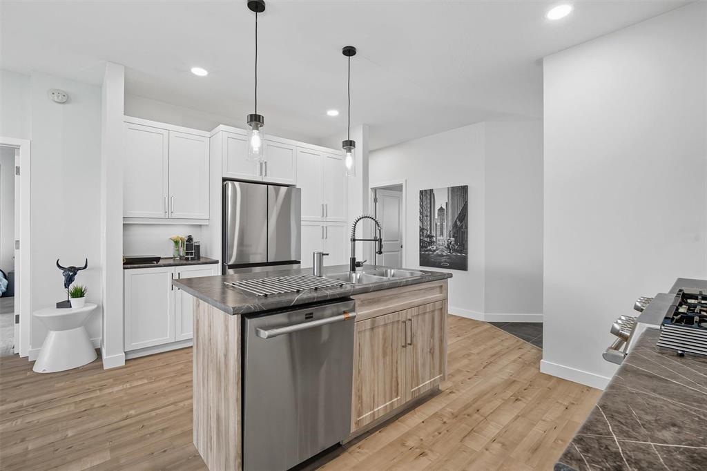 Welcome to 102-100 Grande Pointe Meadows Drive. Enjoy the ease of bungalow living in this detached condo with a double attached garage. Step inside to an open, light-filled layout designed for comfort and style. With 2 spacious bedrooms, the primary suite offers a generous ensuite with a walk-in shower and built-in wardrobe organizers for a truly functional touch. The lower level is partially finished, providing endless possibilities for a future rec room, office, or guest space. All this just minutes from the city, the perfect blend of low-maintenance living with the feel of a single-family home.