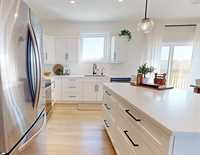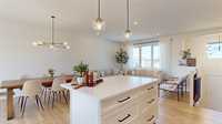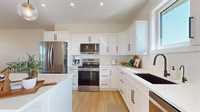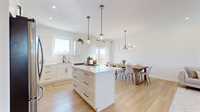 Welcome to this beautifully designed 2-bed, 2-bath home that perfectly blends modern finishes with everyday comfort! The main floor boasts an open-concept layout, a bright and spacious living room filled with natural light from large windows. The custom kitchen offers ample counter space, stylish cabinetry, and flows seamlessly into the dining area—perfect for entertaining. A convenient door from the dining room leads directly to the deck, ideal for indoor-outdoor living. The main floor also includes a generous primary bedroom with a private ensuite, a second large bedroom+a full main bathroom.