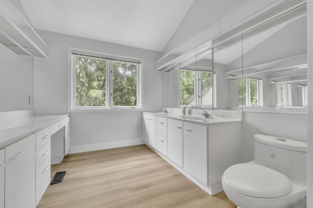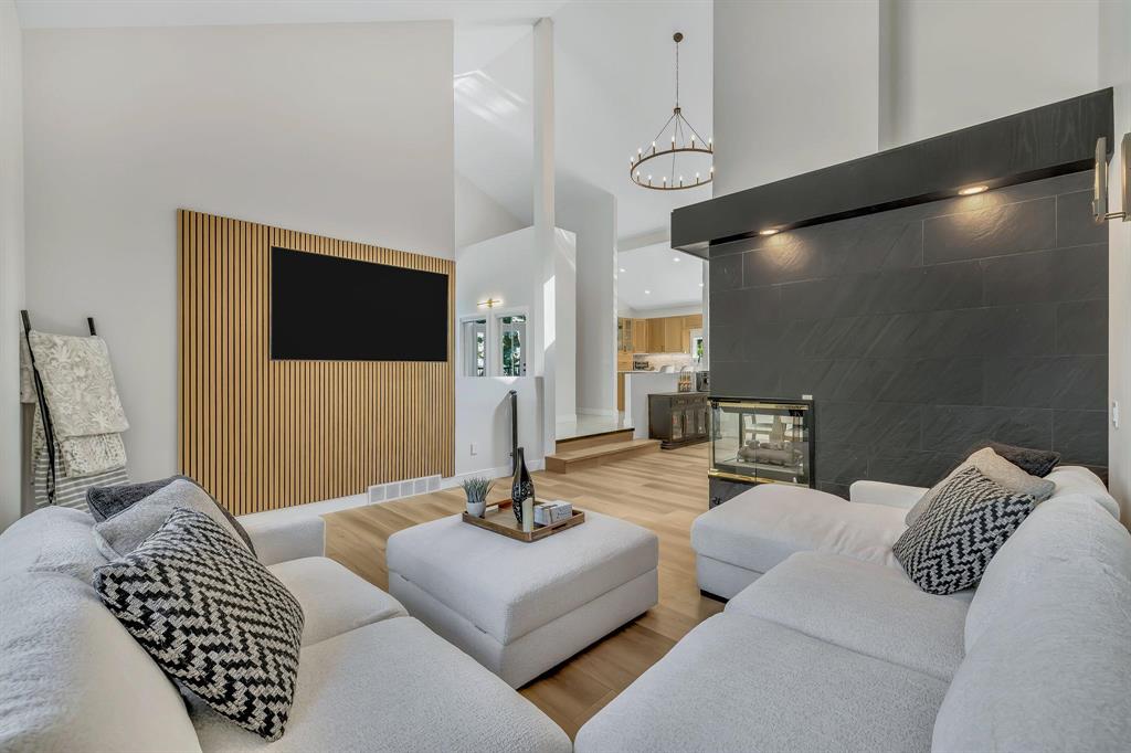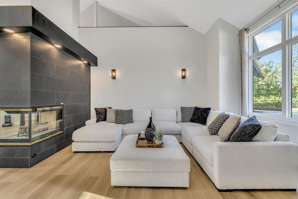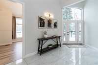 OH SUN FEB 1, 2:30-4:30PM Welcome to 14 Kingswood Crescent. A breathtaking, fully remodeled 3,875 sq ft two-storey home set on a private 1.3-acre lot with spectacular river views, directly across from Kingswood Golf Course. This remarkable 5-bed, 4-bath home seamlessly combines timeless elegance with refined modern luxury. The main level captivates with soaring 20' vaulted ceilings & a stunning double-sided Italian tile gas FP. New LVP & ceramic tile carry throughout the home complimenting the chef-inspired kitchen featuring brand new white oak soft-close cabinetry, quartz countertops, upgraded lighting & premium appliances. The fully finished walkout basement is designed for entertainment, offering spacious rec-room ideal for hosting Jets game's or playoff football & built in GOLF simulator for year-round entertainment. Unwind to the spa-like 6-pce ensuite with heated tile floors, a walk-in double shower, jacuzzi tub, double vanity & smart toilet. Additional features include: triple attached heated & insulated garage, Hardie board siding, & new shingles (2017). Every detail has been thoughtfully curated in this move in ready masterpiece. An opportunity to enjoy luxury living in a premier location.