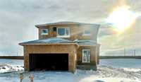 Under construction by Kensington Homes with March–April possession. This stunning two-storey home offers 2,224 sq. ft., 4 bedrooms, and 3 full bathrooms, including a main-floor bedroom and full bath with stand-up shower—ideal for guests or multigenerational living. Luxurious upgrades and high-end finishes create a modern, elegant design. The main level features laminate flooring throughout and a chef-inspired kitchen with maple and thermofoil cabinetry, soft-close doors, tiled backsplash, beautiful quartz countertops, and a large island with abundant storage. The dining area includes a sliding patio door overlooking the backyard, perfect for entertaining. Upstairs, enjoy an impressive primary bedroom with spa-like ensuite, featuring a 5-ft shower and soaking tub. Two additional spacious bedrooms share a full bathroom. A second-floor loft and laundry room add convenience and versatility—perfect for a growing family where everyone enjoys their own private space. Additional features 20' x 22' double attached garage, great room cantilever and driveway with ample parking. An exceptional home offering comfort, style, and functionality—truly a fantastic opportunity!