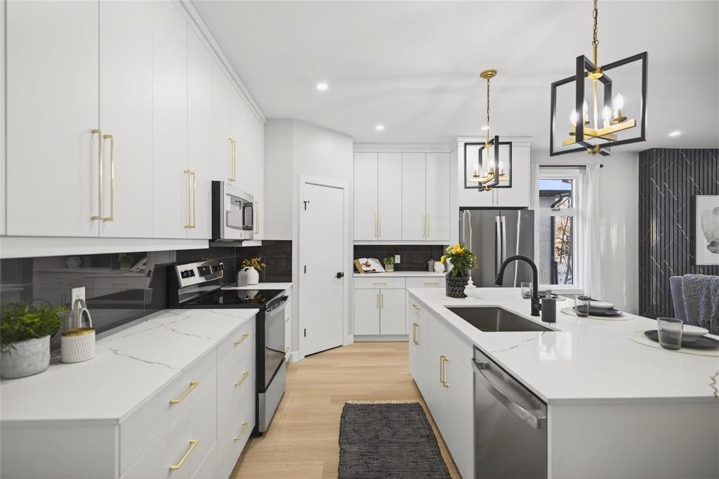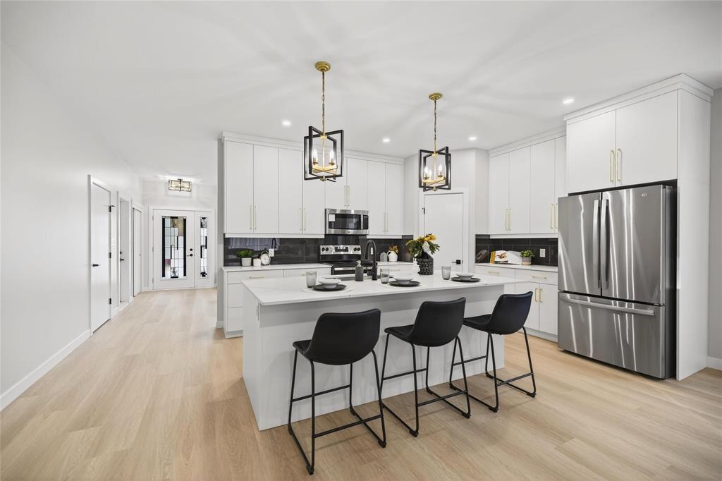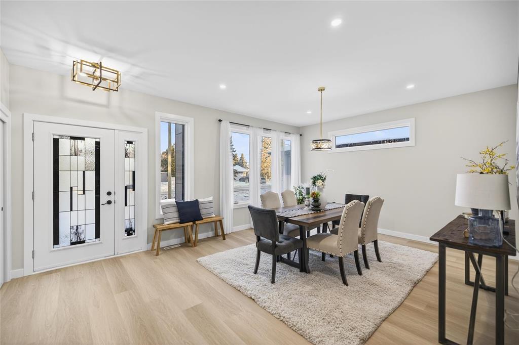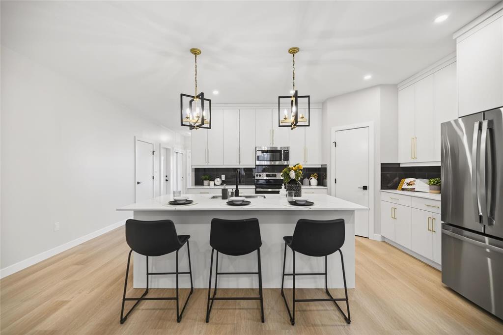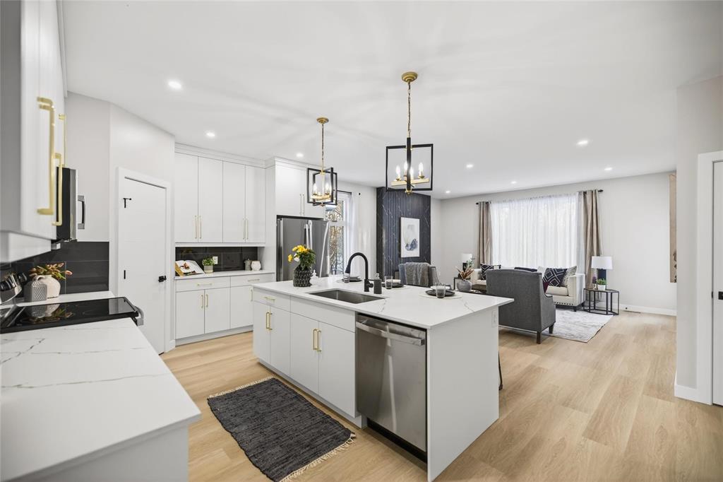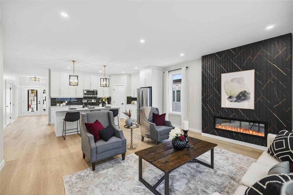 Amazing Quality & Style in Charleswood! Spacious 1685 sq ft Raised Bungalow on a large 62 x 134 treed lot backing onto a greenspace. Great upgrades with a WOOD STRUCTURAL BASEMENT FLOOR and TRIPLE Car Attached Garage!! You will love the fabulous Kitchen with a large island perfect to host gatherings with friends and family. Gorgeous white cabinets to the ceiling accentuated with long gold hardware! Quartz countertops with gold highlights bring it all together. Relax in front of the linear fireplace and enjoy the view of the private treed backyard. Beautiful wide bleached oak looking LVP flooring throughout with carpet in the bedrooms. Down the hall are 2 spacious bedrooms and a Primary bedroom a with walk-in closet & 5 piece ensuite including a shower and separate bath. Convenient main floor laundry. A separate side entry door allows for direct access to the basement where you could create a rental property or in-law suite. You will enjoy the beauty of living in the City, but the feel of country life. Lots of mature trees, biking/hiking trails, deer strolling through your yard, and all only minutes to the shopping centre along Kenaston! 6 APPLIANCES INCLUDED. 5 year Home Warranty included.