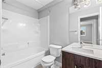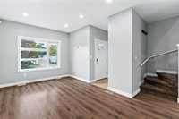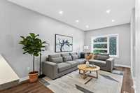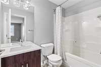 This Norwood property offers a highly functional 1,431 sq. ft. layout featuring a flexible floor plan and a fully finished secondary suite. The main floor is move-in ready with a bright open-concept design, large windows, and a sleek staircase with glass railing. The kitchen is a standout, equipped with quartz countertops, tile backsplash, stainless steel appliances, and large island for extra workspace. Upstairs, the primary suite includes a walk-in closet and private ensuite, plus two additional bedrooms and convenient laundry.