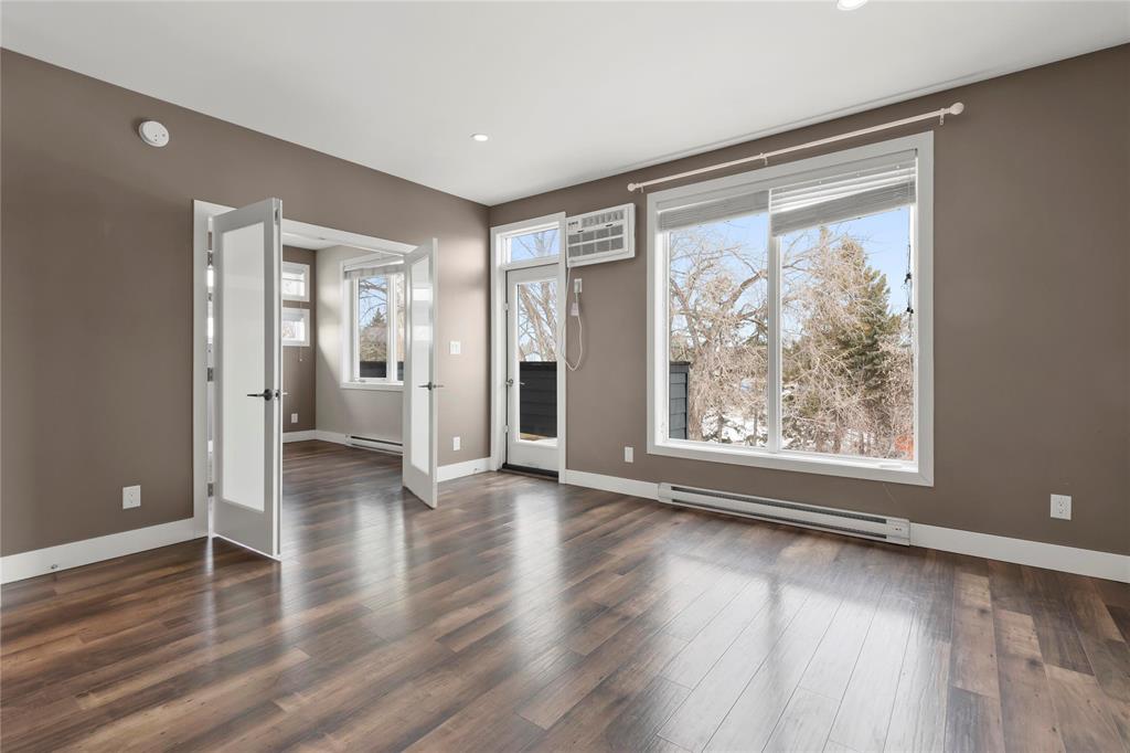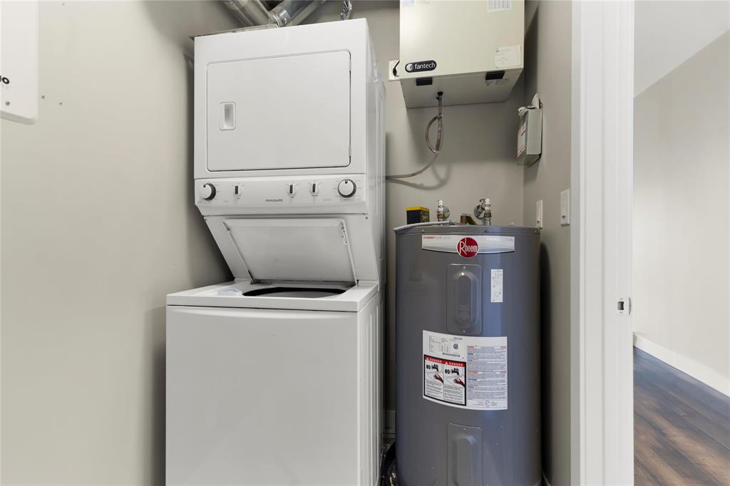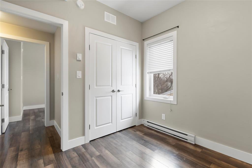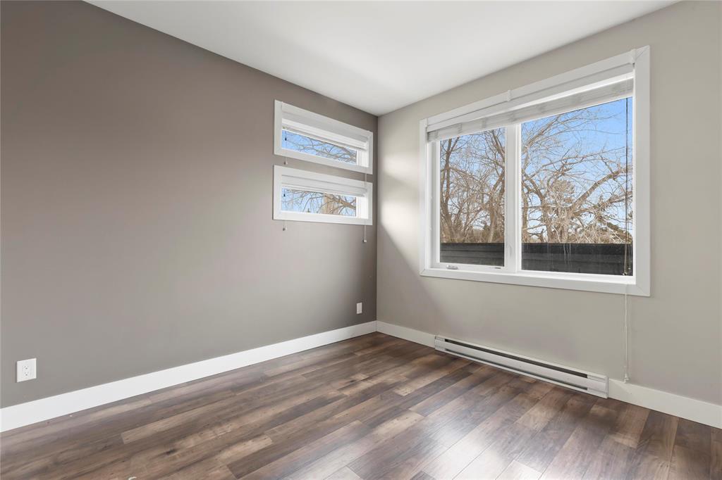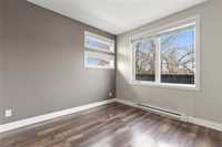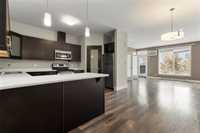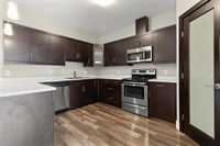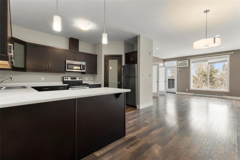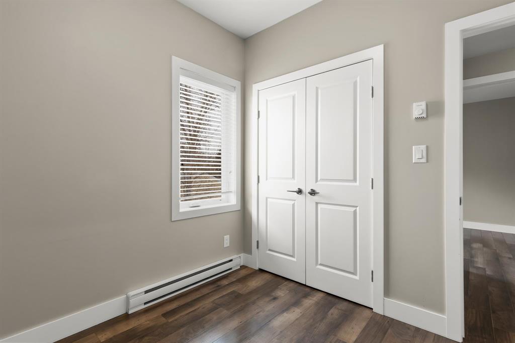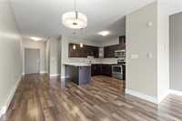Artfully designed for modern living, this 1146 square foot 3 bedroom TOP FLOOR suite blends style with smart functionality. TWO parking stalls included! Front entry leading to the kitchen with pantry and extended eating island—perfect for casual dining. The open-concept layout features warm laminate floors, 9’ ceilings, and an 8’ sliding door that opens to a private balcony with views of mature trees. The primary bedroom features double doors, a walk-in closet and a 4 piece ensuite. Two more bedrooms and a 4 piece bathroom, and a laundry/storage room adds everyday convenience. With only one shared wall, each unit is built with peace and quiet in mind. Features include HRV, wall A/C, in-suite washer & dryer, stainless steel appliances, blinds, and parking. Bold architecture and spacious common spaces make 5 FIVE 5 a place you’ll be proud to call home.