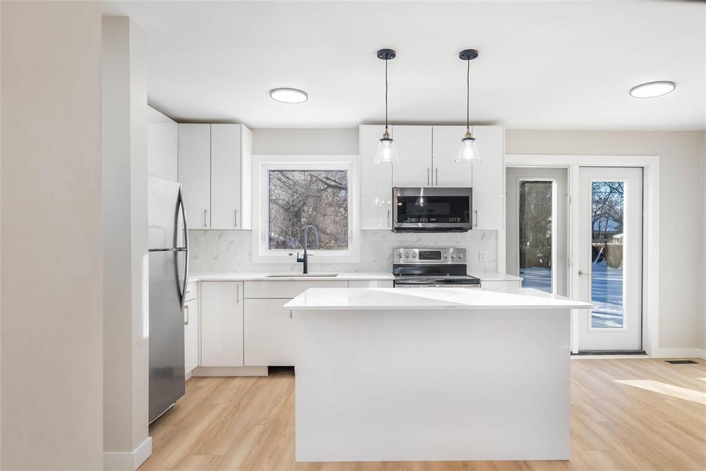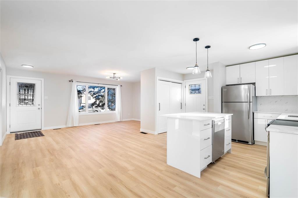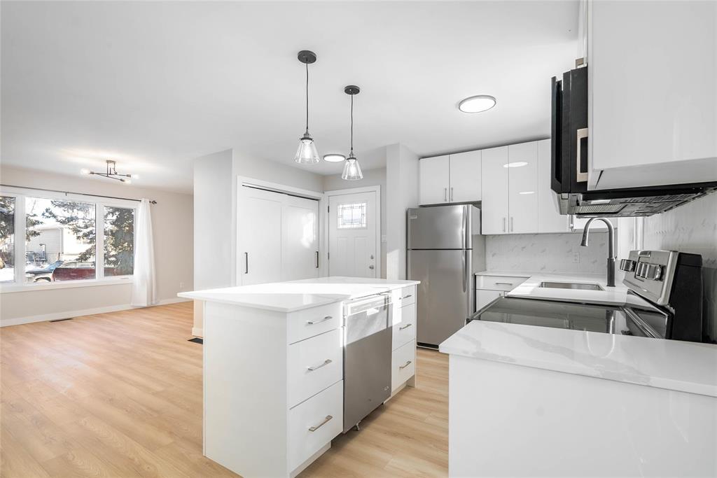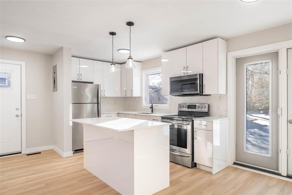 Showings start Sun January 18th. Offers ANYTIME. Step inside this stylish 1,040 sq ft bungalow tucked into the heart of Selkirk and prepare to be impressed. Designed for everyday living and easy entertaining, this home offers three well-sized bedrooms on the main floor, a modern 4-piece bathroom, and a bright open-concept layout that feels both welcoming and functional. The kitchen is the true centerpiece, featuring quartz countertops, sleek finishes, stainless steel appliances, and a clean, contemporary design that flows seamlessly into the dining area. Patio doors lead to a 10x10 deck overlooking a massive backyard—perfect for summer evenings, kids, pets, or future plans. The bathroom showcases tiled floors and modern finishes and conveniently includes the washer and dryer. The new large PVC windows fill the home with natural light, while updated flooring, doors, high efficiency furnace, shingles, HRV, and central air conditioner to name a few create a move-in-ready feel throughout. Every space feels fresh, intentional, and thoughtfully finished. A perfect blend of comfort, style, and location—this is one you’ll want to see in person.