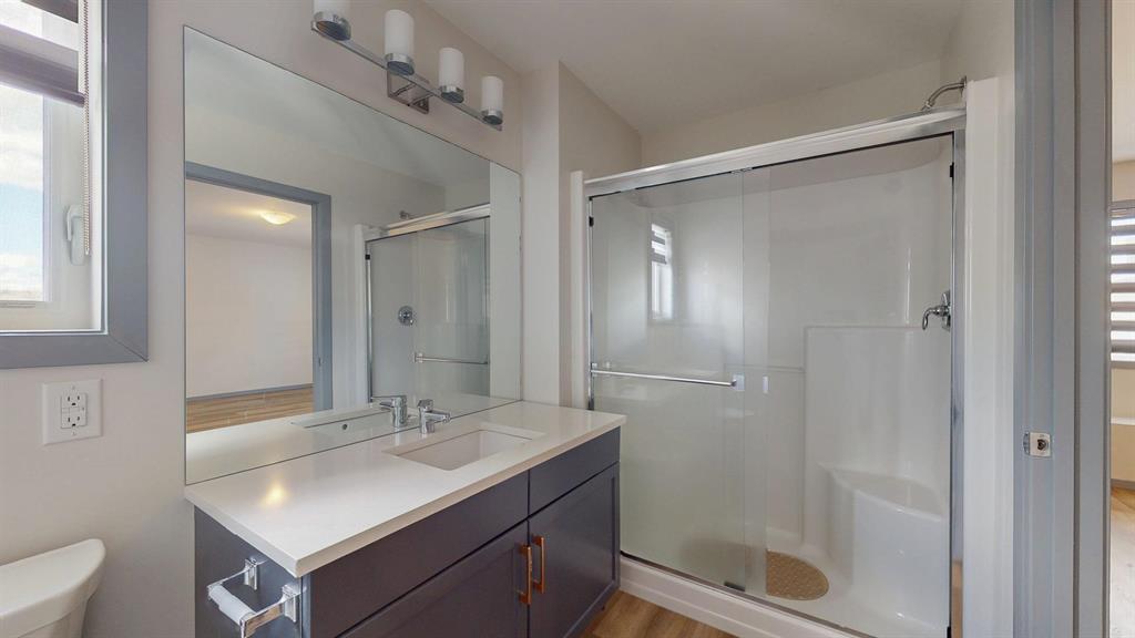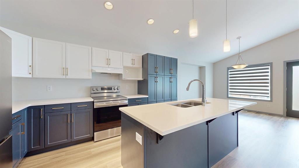 Ss now. Offer reviewed as received. Why build when you can move into this almost new house in Prairie Pointe. This 1580 square feet cabover offers 3 bedrooms, 2 full bath and big windows basement for future development. Main floor features with open concept, designer selected two tone Kitchen cabinet and Stainless-Steel Kitchen appliance. Bright dining room and living room with huge windows and vault ceiling make the space cozy and comfortable. Quartz counter top and upgraded Vinyl Plank flooring throughout the house. Upgraded bathrooms. Two decent size bedrooms on main floor with full bath. Over-sized primary bedroom located on the upper floor with walk-in closet and five-piece ensuite. APPLIANCES INCLUDED. Call today to book your appointment. QUICK POSSESSION AVALIABLE. Book your showing today.