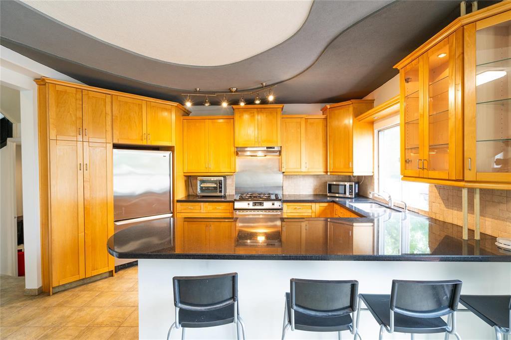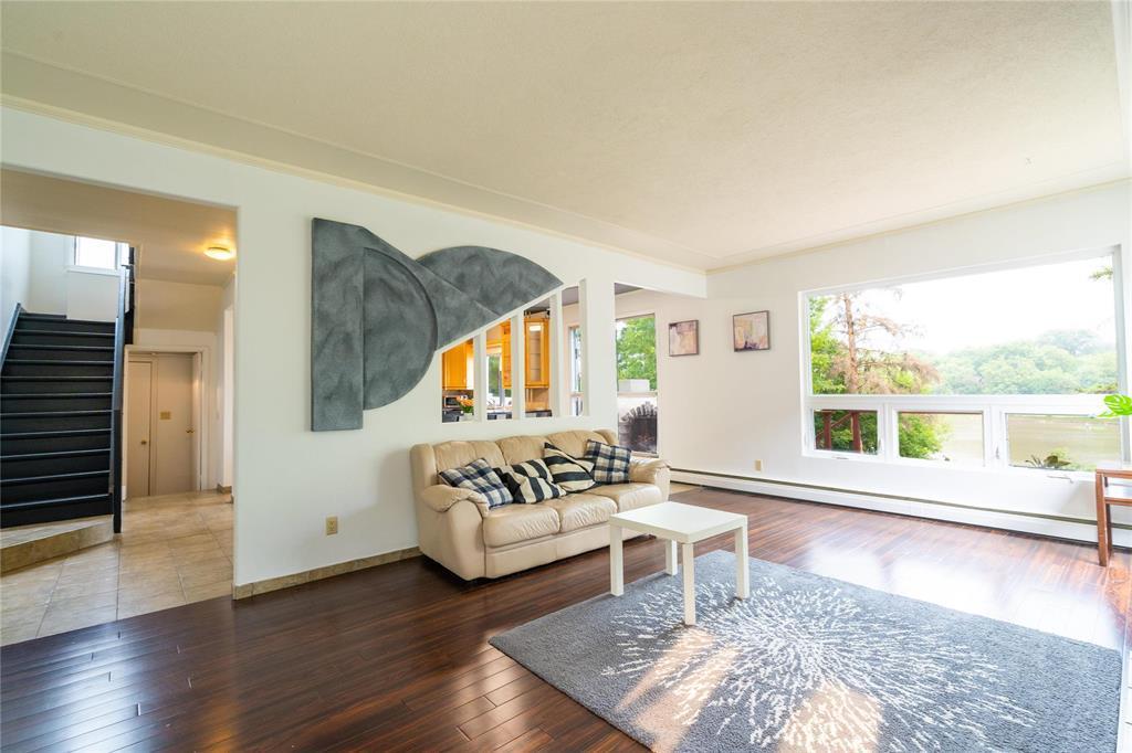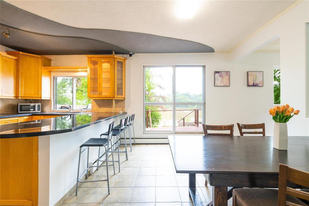 Offer anytime. Prestigious River front location on Riverside Dr. in very sought after East Ft. Garry, bright open spacious Great Room designed main floor/open fireplace spectacular panoramic views of the river, custom maple style kitchen cabinets, granite counters, breakfast bar, dining area, 2 pc. bath on main, huge master bedroom up, renovated rustic style bathroom, lower level recroom, patio doors off dining area to large deck, redone acrylic stucco exterior offering very modern curb appeal, att. garage, super value for river front property, make your appointment today.