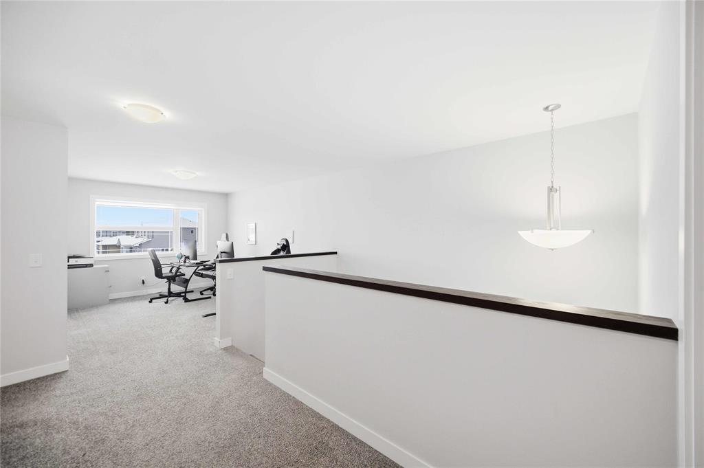 SS now. Offers as received. Measurements +/- jogs. Welcome home to 27 Spillett Cove, ideally located in the beautiful community of Ridgewood West. This bright, spacious 2,371 sq. ft. home features 4 bedrooms and 3.5 bathrooms, sits on a large pie-shaped lot, and offers an exceptional opportunity for family living. From the moment you arrive, the home impresses with its curb appeal and inviting exterior, while the lovely back deck provides the perfect place to relax or entertain. Inside, a spacious foyer leads to a light-filled great room with a built-in fireplace and entertainment unit—ideal for everyday living or hosting guests. The chef-inspired island kitchen showcases quartz countertops and flows into a generous dining area, while an open den adds flexibility and style to the main floor. The fully finished lower level offers additional versatility. Upstairs features three bedrooms, including a spacious primary suite with a deluxe ensuite and walk-in closet, plus a large open loft and convenient laundry room. Offering comfort, style, and functionality in a sought-after location, 27 Spillett Cove is a place you’ll be proud to call home. Call today!