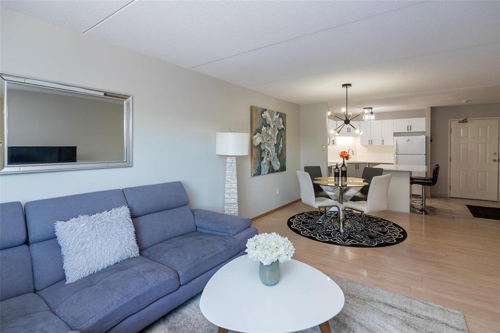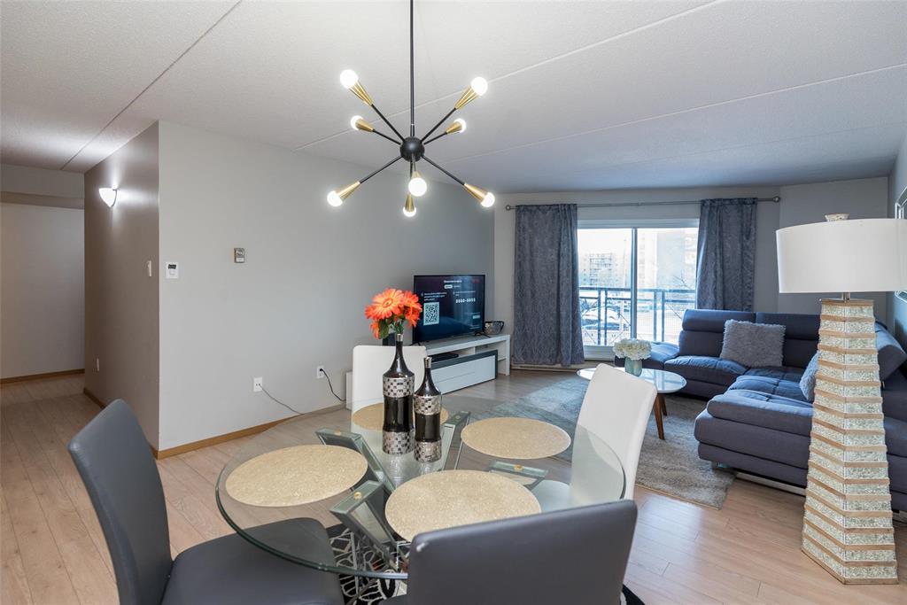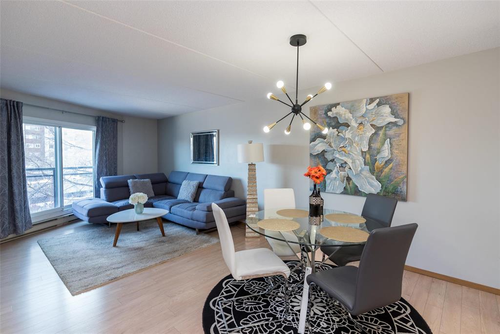 Showings start Feb 7th. Offers Feb 16th. Move-in ready and FULLY FURNISHED! This bright, south-facing third-floor condo offers 1,048 sq ft of stylish living in a solid concrete building, featuring river views from your private balcony. The fully updated kitchen showcases beautiful white and grey cabinetry, stunning white countertops, and a modern backsplash, complemented by renovated bathrooms and fresh paint throughout. This spacious 2-bedroom, 2-bath unit includes upgraded appliances, newer laminate flooring,in-suite laundry, and ample storage. The oversized primary bedroom features a walk-in closet and a 3-piece ensuite. All furniture is included, along with underground parking. Building amenities include a gym and party room. An excellent opportunity to live in or own as a possible income-producing property. Ideally located near the University of Manitoba, transit, shopping, and a short commute to downtown.