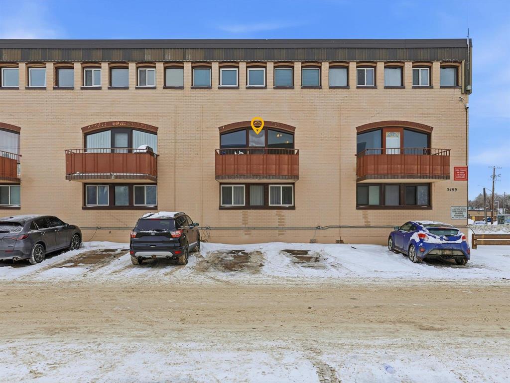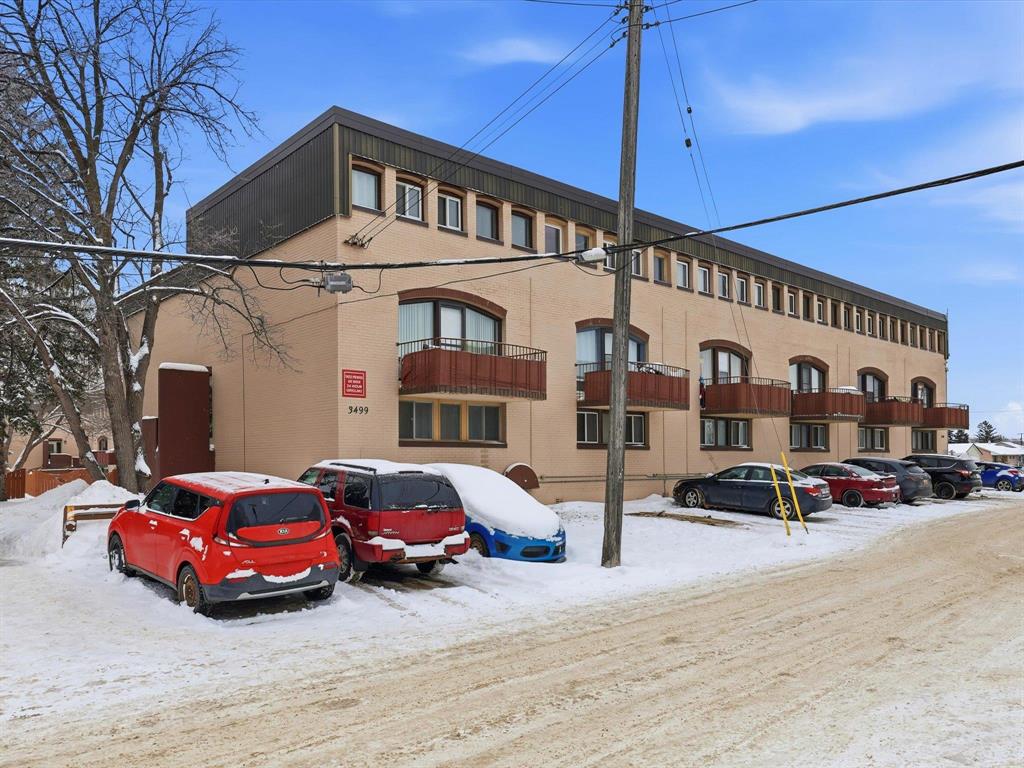 Showings start now, offers as received. Great opportunity for first-time buyers or investors! This well-maintained 3-bedroom condo offers a functional two-level layout. The main level features an L-shaped living and dining area, a bright white kitchen, private balcony, and a large in-suite storage room for added convenience. Upstairs, the primary bedroom showcases wood parquet flooring and double closets, complemented by two additional generously sized bedrooms and a very spacious 4-piece bathroom. Includes one electrified parking stall. Ideally located close to shopping, public transportation, and everyday amenities. Condo fees cover everything except hydro ($55/mth for the past year!), keeping monthly costs very affordable. Don't miss your opportunity to move into a move-in ready and affordable option at a great price! Call today for your own private showing!