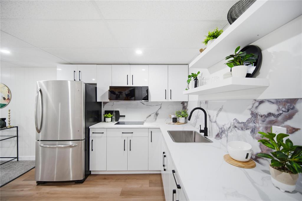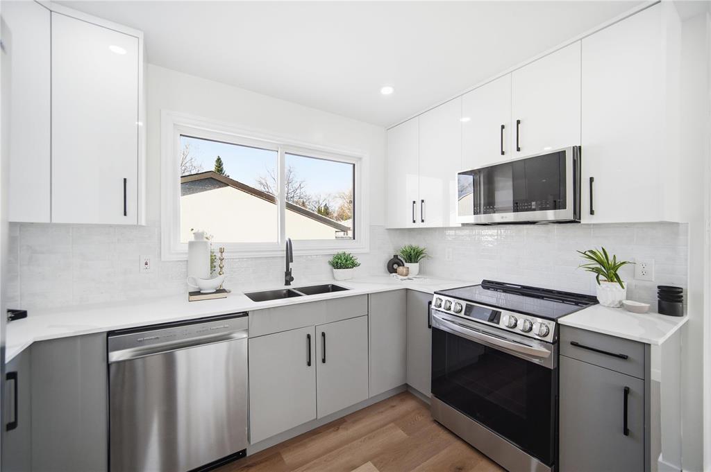 SS Jan 14. OTP Jan 22. OH Saturday Jan 17 12-1pm & Sunday Jan 18 1-3pm.This beautiful Maples bungalow is the one you've been waiting for. Updated with style and function- plenty of room for the whole family in this 3 +2 bed home. Features new vinyl plank floors, an open concept living room and brand new kitchen! Including quartz countertops, tile backsplash and all new kitchen appliances. Move downstairs and find space for granny/nanny or more family with 2 more bedrooms, an open concept living room, 2nd fridge, sink, storage and 3 piece bath. Outside the back door is your private, fully wood fenced backyard, a double detached garage and additional parking for 2-3 more vehicles. With central air, 2023 high efficiency furnace, 2023 HWT and 2025 shingles for house and garage- all that's left for you to do is move in and enjoy.
