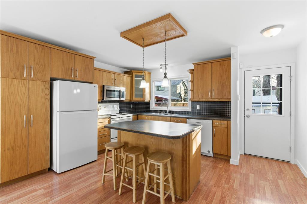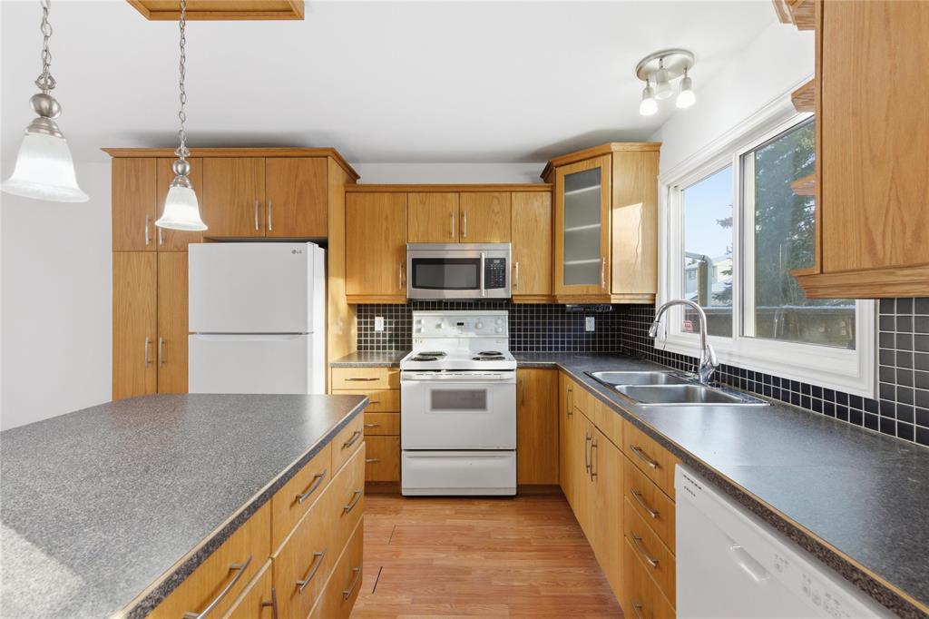 Showings start now, offers reviewed Wednesday, January 21st in the evening. Welcome to this move-in ready home featuring a bright open-concept eat-in kitchen, upgraded windows and laminate flooring. The main floor offers a cozy living room with a wood burning fireplace and a convenient 2-piece bath. Upstairs you’ll find 3 comfortable bedrooms and a 4-piece bathroom. The finished lower level includes a rec room, laundry area, and storage. Outside, enjoy a fully fenced yard with deck and garden space. Great location within walking distance to all levels of schooling, active trail and public transportation.