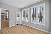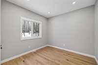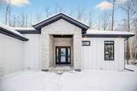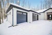 Outside, a striking exterior of white board and batten, complementing stone, and white stucco is accented by black garage doors, trim & front door. A massive 38×24 triple garage with epoxy floors, an oversized driveway, and a beautifully treed pie shaped lot complete the picture (Front Width 72', Back Width 96', Depth 141'). Enjoy Pinawa’s 4-season lifestyle: boating, kayaking, golf, hiking, pickle-ball, snowshoeing, ice fishing, & more. Your permanent residence or cherished cottage awaits!