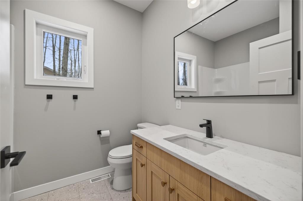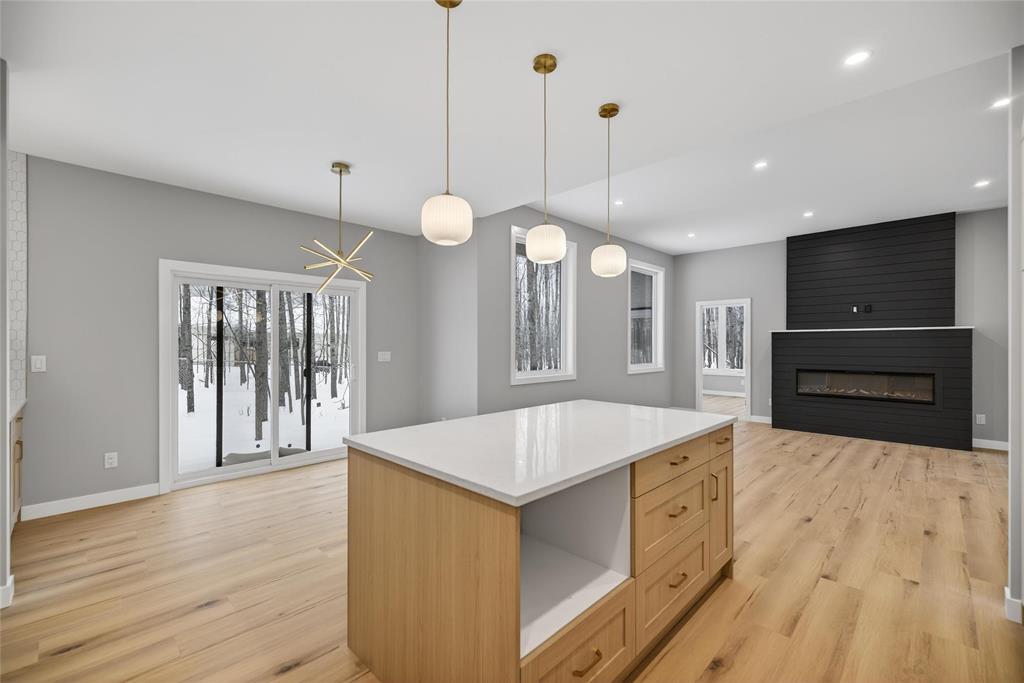 Welcome to your dream retreat in the heart of Pinawa! A luxurious yet inviting home designed for year-round living or the perfect Whiteshell getaway. Nearly 1,800SF of thoughtfully crafted space offers 3 bedrooms, incl. a serene primary suite w/ a large walk-in closet & spa-inspired ensuite w/ double sinks, stand-up shower, & elegant tile. The open-concept main floor blends a warm, sunlit kitchen — wood and white cabinetry, quartz counters, coffee nook, and striking backsplash with a spacious dining area and cozy family room featuring an electric fireplace. A beautiful sunroom off the living area, paired with windows throughout, creates seamless indoor-outdoor harmony.