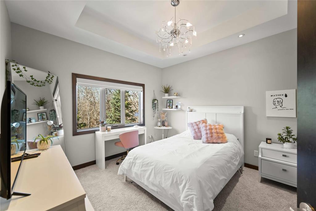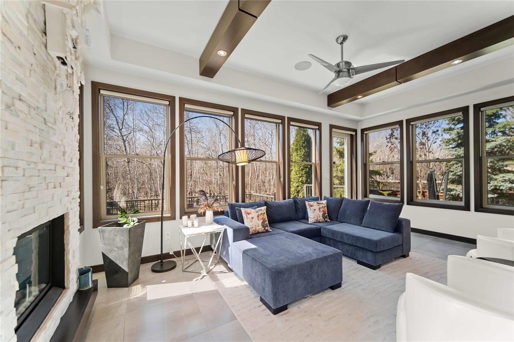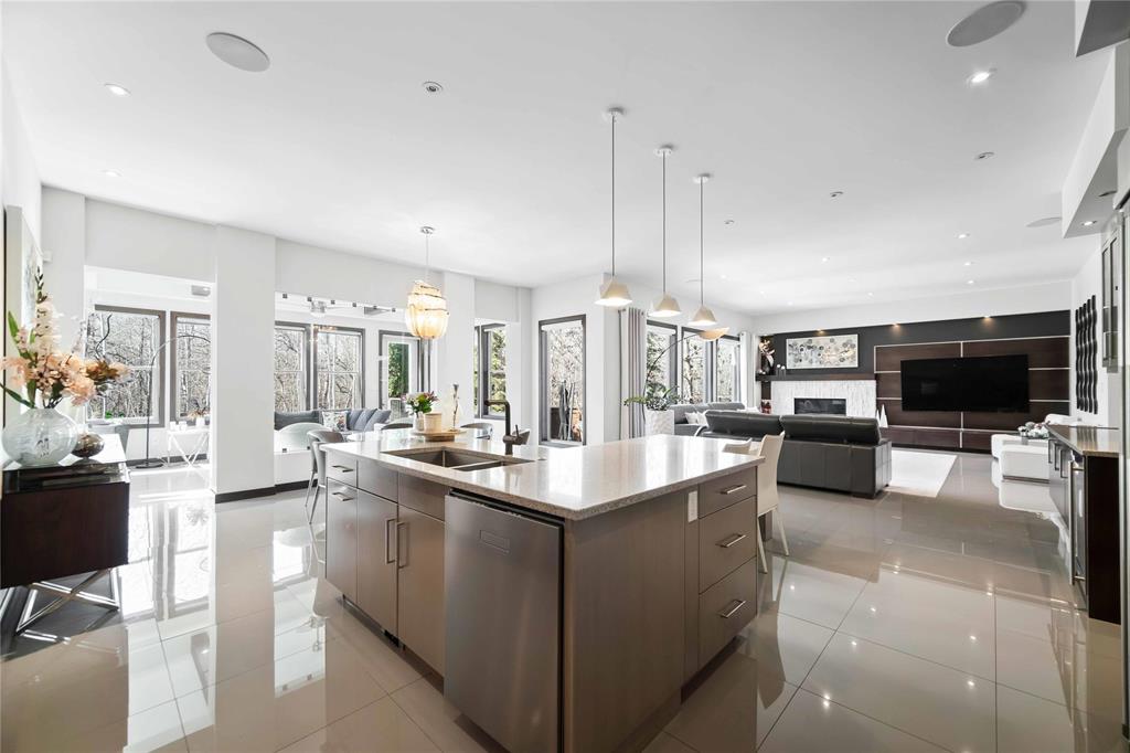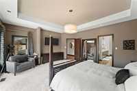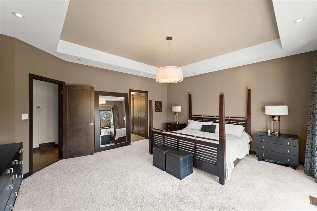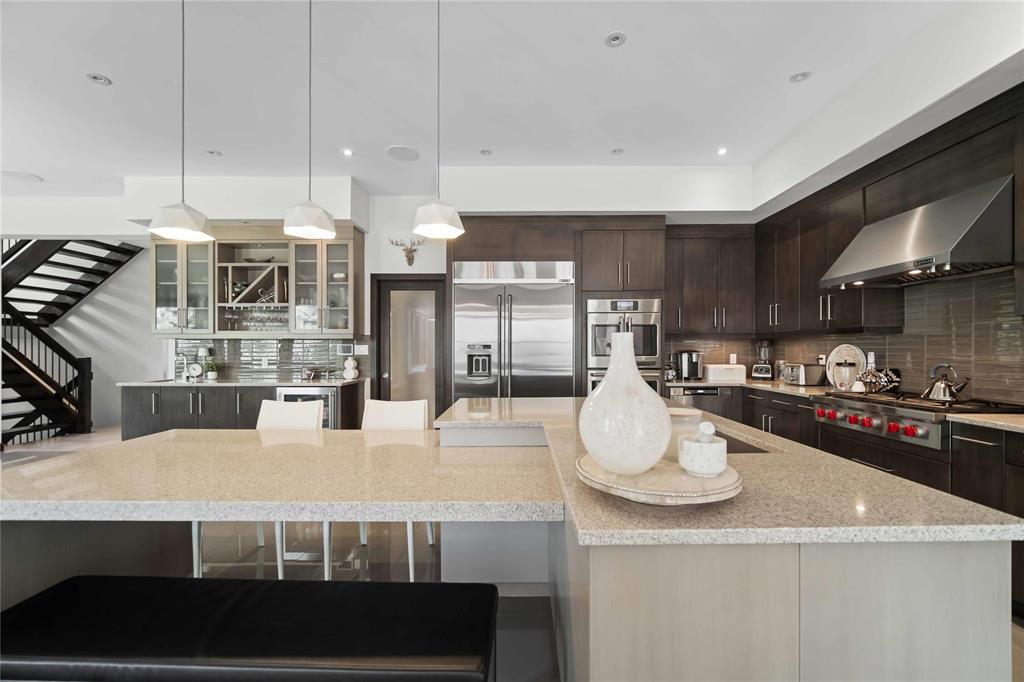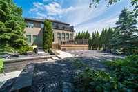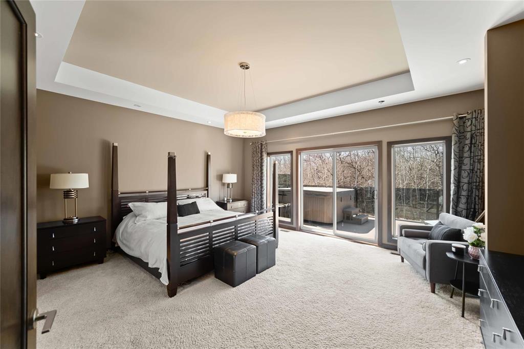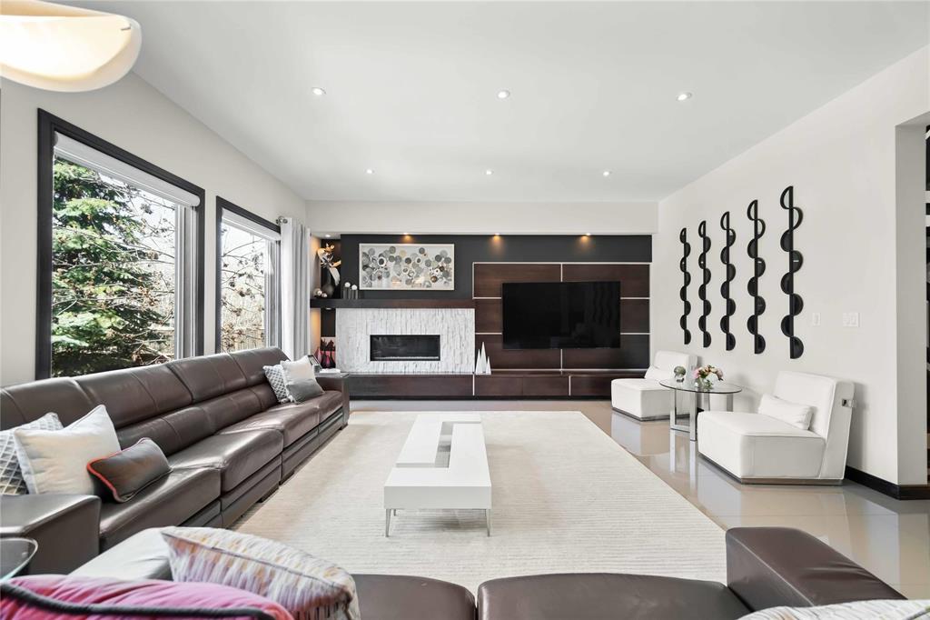 Top of the line 3,538 sf Maric built 2-storey backing onto the forest in Royalwood. Replacement value of $3,000,000. This home is over the top in fit and finish with a large front entrance and office w/glass doors, HWF's + bright windows. The kitchen has tons of cabinetry with a 2-tier island, quartz counters, backsplash, pantry and top of the line appliances. The adjoining family rm has lots of room for furniture with a built-in entertainment centre w/gas FP as well as a custom wet bar. The sun rm at the back is surrounded by windows with a 2nd gas FP on the main floor. Upstairs there are 4 bedrooms (one of which has a 2pc ensuite) with the primary having a dlx ensuite w/ his/hers sinks, glass shower and soaker tub, HUGE walk-in closet and private roof top patio w/hot tub. The bsmt is fully fin w/ steel beam construction + structural wood floors. The rec rm has 9' ceilings, big windows, custom entertainment centre + gym. The 5th bedroom has its own ensuite bath as well as having direct access to the garage from the bsmt. There is also a large piano rm/ 6th bedroom. The yard has been meticulously landscaped and has a large patio w/tons of boulders and sunken fire pit that is surrounded by the forest.
