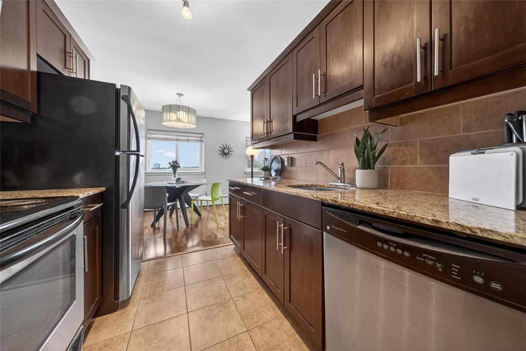 Welcome to The Avenue on Corydon! 2 bdrm 1 bath, 905 sq ft corner condo in a pet-friendly building offering an outdoor parking stall, storage locker, bike rm storage, upgrd security entry system & updated elevator. Features incl PVC windows, updated hardwood floors, pot lights, & a well-designed galley kitchen w/ granite countertops & stainless steel appls. The large, spacious LR is filled with sunny southwest light, enhanced by the bright corner unit layout. The kitchen flows seamlessly into a sun-filled DR, ideal for everyday living & entertaining. The primary bdrm easily accommodates a king-size bed & additional furniture. Enjoy excellent storage throughout with coat, linen, and broom closets, two generous bedroom closets, plus the addl storage locker for all your extras. In-suite laundry with a washer/dryer combo adds everyday convenience. Located in an A+ spot in the heart of Corydon Village this home is within walking distance to coffee shops, restaurants, patios, convenience stores, public transportation, Osborne community centre (which has free composting!) & all the amenities of Osborne Village. The location upgrades your lifestyle & the unit itself upgrades every day living! OTP as received.