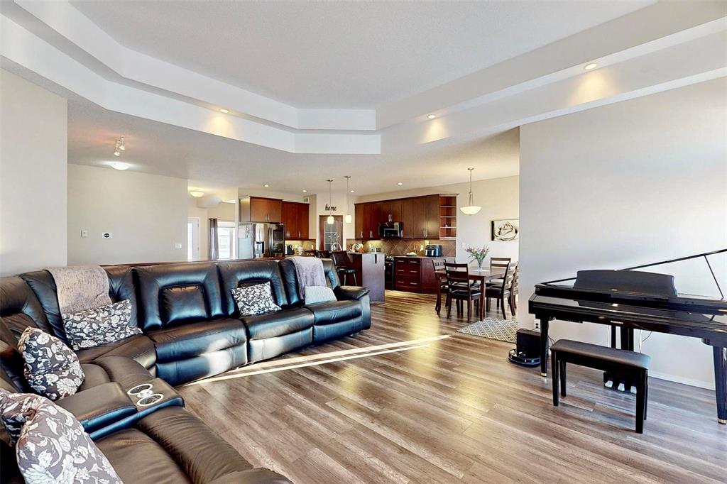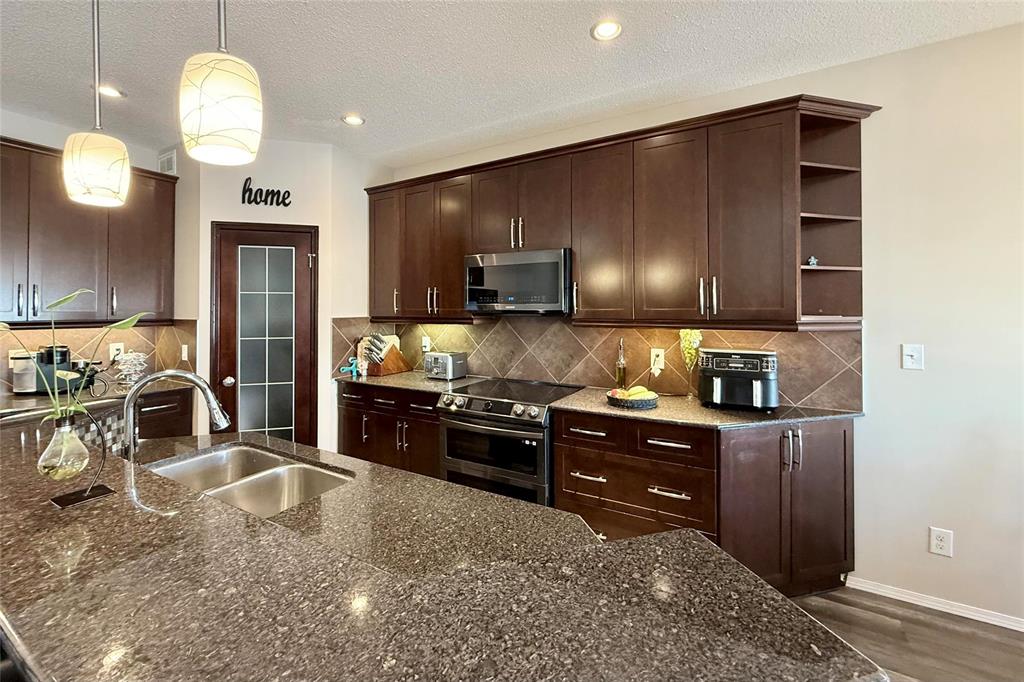 Showings now. Offers presented same evening as received. Former Ventura show home. Premium 1,941 sq ft bungalow showcasing a smart great-room plan and quality construction throughout. Bright main living space with 9’ ceilings, 11’ tray ceiling, and tile-faced gas fireplace. Beautifully appointed kitchen with granite counters, stainless steel appliances, 2-tier island, walk-in corner pantry, and breakfast nook with garden door leading to an extended deck. Spacious primary suite offers 2 walk-in closets and a 5-pc ensuite with jetted tub, double sinks, and 5’ shower. Main floor laundry, mudroom, and direct access to the oversized garage and workshop. Finished basement adds impressive living space with 4th bedroom, office, wet bar, and ceramic-tiled walk-in shower. Enjoy the endless western sky and show-stopping sunsets, just steps from the scenic Kingswood Golf Course.