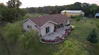 The property is fully enclosed with electric fencing, ideal for livestock or hobby farming, and is home to 5 horses. A massive barn, three additional outbuildings, and a double detached garage provide ample storage and workspace for vehicles, equipment, or farm needs. In 2011, the entire home was fully remodelled—interior and exterior—also a new well was drilled, and a septic field with holding tank was installed.