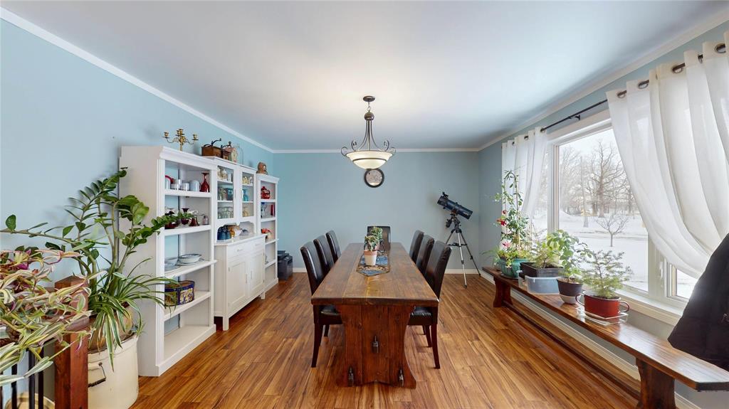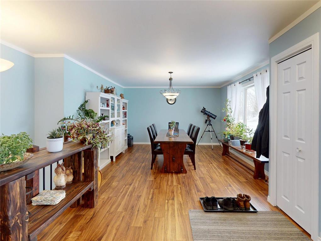 Set on 7 acres of scenic farmland, this beautiful bungalow combines modern comfort with rural living! The home features 4 spacious beds and 2 baths, including a primary suite with private ensuite. The open-concept living room and kitchen provide a welcoming space for family gatherings, while the large, bright dining room overlooks the property, bringing in natural light and peaceful country views. Three additional bedrooms are generously sized with bright windows, offering flexible space for family, guests, or a home office.