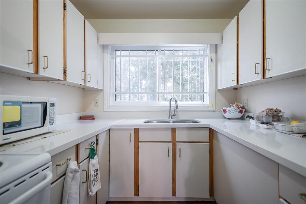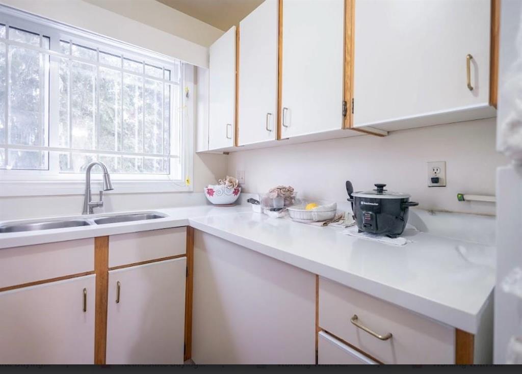 Enjoy your morning coffee and visit with your neighbours from this fabulous front porch. Welcome to this lovingly maintained, energy efficient 2+bedroom, 2 bath family home with double garage. It's conveniently located near all levels of schooling, walkable to shops, great fish stores, cafes, Holy Ghost Catholic School, buddhist temple, and plenty of bus service. Only 29 years young this home boasts a most spacious living room with pretty mullioned tri pane windows, a dining room with chandeliers, large enough to accommodate 8-10 guests, and large primary bedroom, Downstairs rumpus room features and electric fireplace, wet bar and 3 bar stools . The lower level playroom is quite large and could converted to be a 3rd bedroom with an already built in closet. A beautifully landscaped fully fenced 148 foot deep yard is ready for your children to romp and roam, with room to spare for nice vegetable garden. Double detached garage, too! Quick possession is possible. Only $1354.00 per month OAC with 5% down-payment. Call now to book your showing