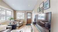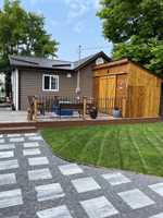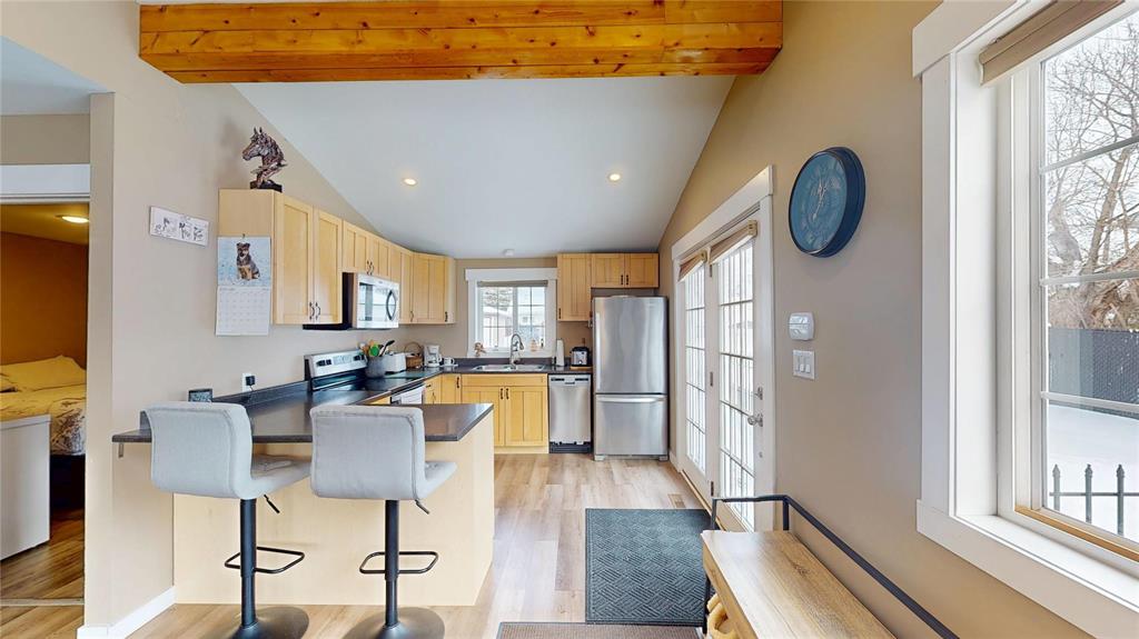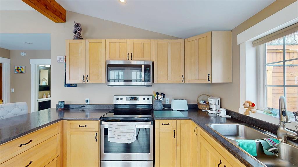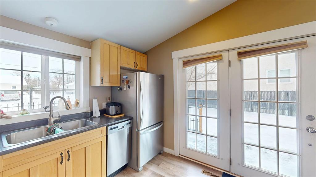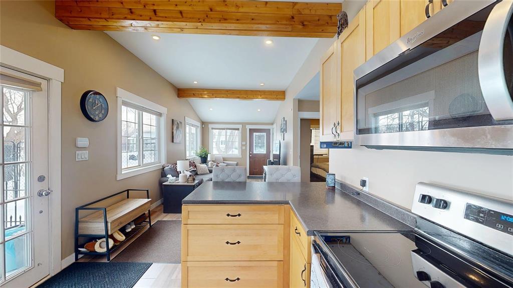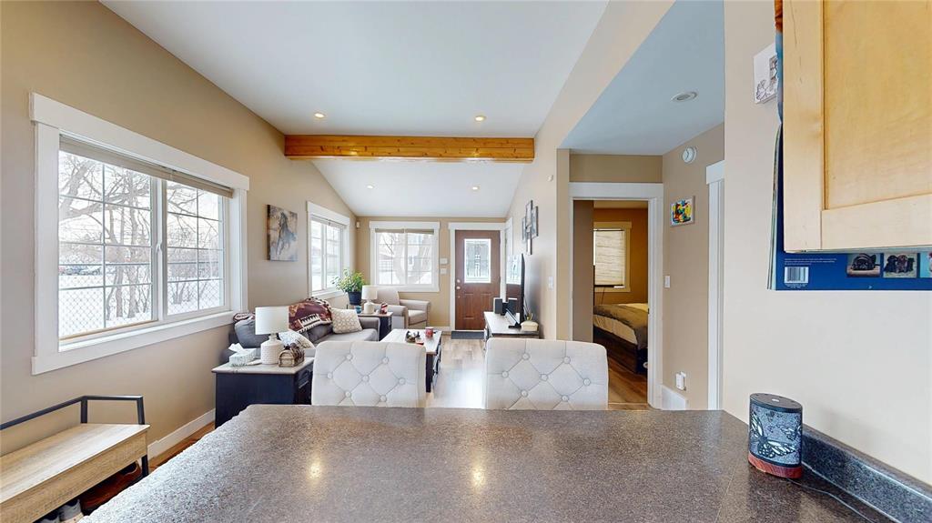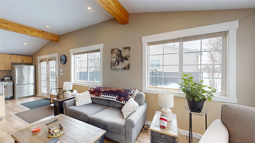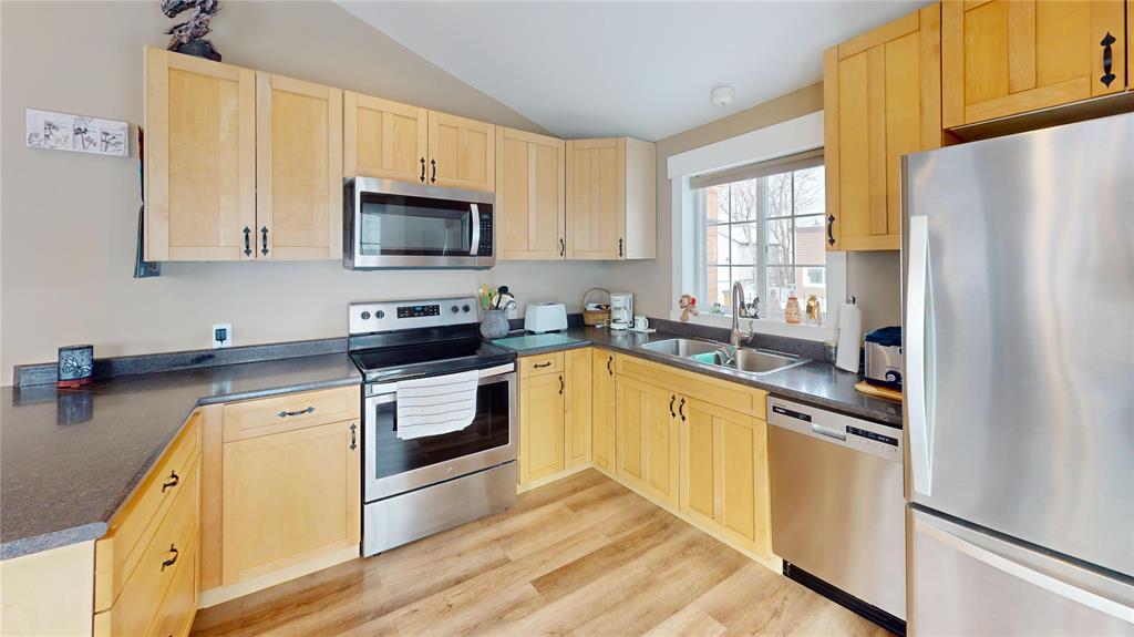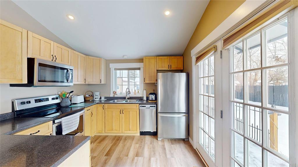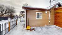 Cute, clean and move in ready! Check out the virtual tour for a closer look. This bright and open two bedroom bungalow all on one level on a fabulous double lot will check all the boxes. Lots of natural light from many large windows. Completely renovated including, kitchen, bathroom, all windows and doors, vinyl siding, metal roof, furnace, flooring and more. Open beamed ceiling in main living area. Spacious living room with front entrance with coat closet. Light oak kitchen with garden doors to deck, lots of cabinets and counter space, breakfast bar and stainless steel appliances including built-in microwave and dishwasher. Four ;piece bath with stacking washer and dryer. Good sized bedrooms with closets with mirrored doors. Forced air gas heat and central air conditioning and partial basement with sump pump. 61' x 116' lot with newer chain link fencing (6 feet high on three sides, 4 feet on west side). Beautifully landscaped, large deck, two sheds with metal roofing, back one is wired and insulated. Parking front and back for at least 6 vehicles. Reasonable taxes and utility costs, close to bus route. Just move in and relax, all the work is done!