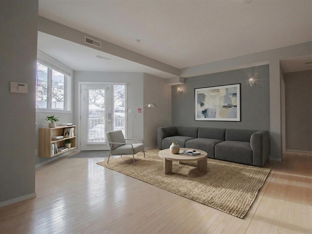 Welcome to this spacious 1018 sq. ft. main floor condo offering comfort, convenience, and a fantastic location! This well designed 2 bedroom, 1 bath home features a bright open concept living area with large windows that fill the space with natural light. The kitchen offers ample cabinetry and counter space, perfect for cooking or entertaining.