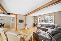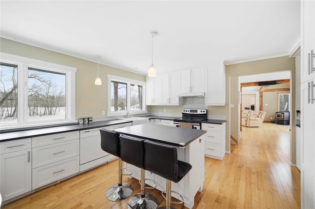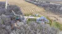 S/S Now. Offers as received. Rare opportunity to own this stunning 11.48-acre riverfront property with approx. 1,197 ft of river frontage, featuring a spacious main residence plus a beautifully finished coach house just steps away — ideal for multi-generational living, rental income, or guest accommodations. The 2,275 sq. ft. two-storey main home offers hardwood floors, a well-appointed kitchen with abundant cabinetry, island, and generous workspace. The formal dining room and timber-frame inspired great room showcase incredible river views. Main floor includes living room, office, two bedrooms, and full bath. Upstairs features a spacious primary suite with river views and luxury 5-piece ensuite. Detached 4-car garage, firepit area, barn, and fenced space previously used for alpacas. The 1,099 sq. ft. coach house (2016) features one bedroom plus loft, ensuite, two half baths, sunroom, quartz kitchen, river views throughout, Trex deck with hot tub, heated 3-car garage, and modern finishes. A rare blend of space, versatility, and natural beauty.