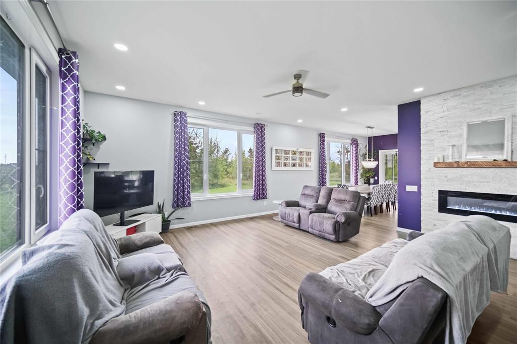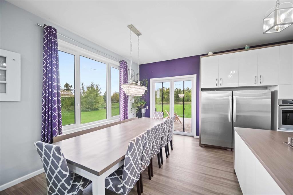 SS. Now, OTP as received. Discover the perfect balance of country serenity and modern luxury just outside Mitchell, only minutes from Steinbach. This stunning 7-bedroom home sits on a mature 2-acre lot and boasts exceptional curb appeal with stone and KWP siding. A massive 30'x30' heated garage offers the ultimate workshop space for all your recreational equipment. The bright main floor features 9' ceilings, triple-pane windows, and vinyl plank flooring. The chef inspired kitchen impresses with an oversized fridge/freezer combo, built-in oven, large peninsula, and walk-in pantry. The upper level hosts 4 spacious bedrooms, including a private primary retreat with a huge walk-in closet and 4pc ensuite. The fully finished lower level is the ideal teenager zone, adding 3 more bedrooms, a 5pc bath, a large rec room, and a second laundry setup. Outside, your private park awaits! Relax on the 14'x22' deck surrounded by mature trees and ample garden space. With 7 bedrooms and quality finishes throughout, this is a rare find. Call today!