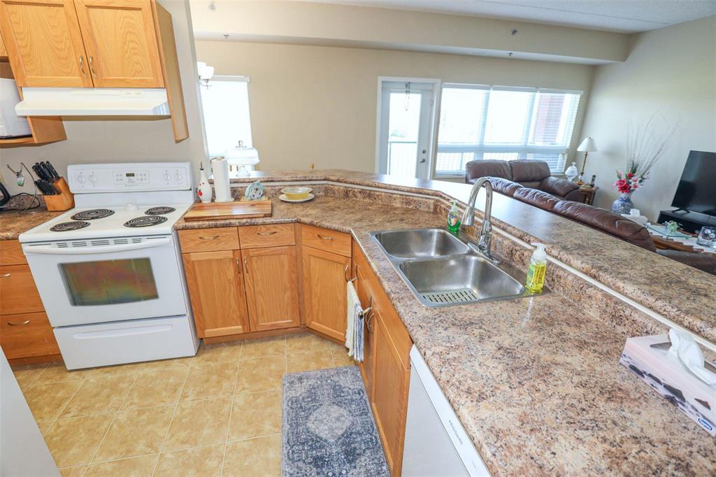 Showing starts now. Offers as received. Welcome to this bright and spacious 1,128 sq. ft. 2-bedroom, 2-bathroom condo featuring an open-concept layout and a private patio. The generous living and dining areas offer the perfect space for entertaining or relaxing, while the kitchen provides ample cabinetry and counter space, opening seamlessly to the main living area. The large primary bedroom includes a walk-in closet and 4-piece ensuite. The second bedroom is ideal for guests, a home office, or den. Enjoy the convenience of in-suite laundry, large in-suite storage, and an additional storage locker located in the heated underground parking garage—which also includes a car wash station. One underground parking stall is included. One pet (either cat or dog) under 30 lbs is allowed.