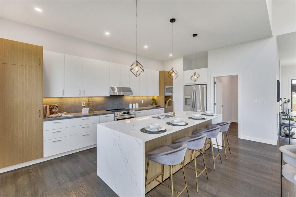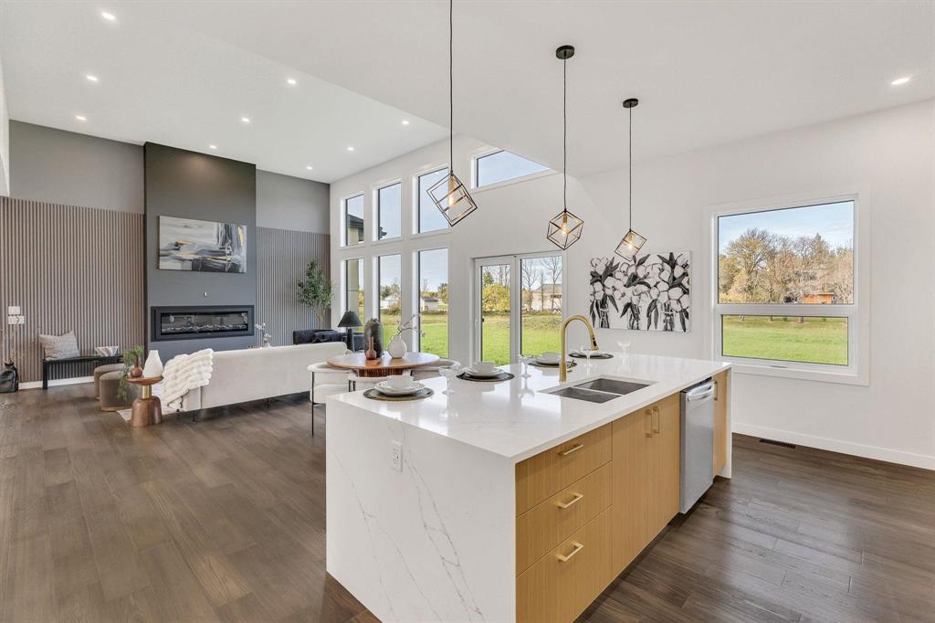 SS now. Offers as received. Welcome to your dream home in Grand Pointe. This stunning brand-new 2450 sf 3 BR, 2.5 bath bng is nestled on a serene 2 acre lot, offering the perfect blend of luxury, space & tranquility. Only 8 min to Wpg this home will not disappoint the fussiest buyer. You will be impressed w/the engineered hwfs that pair w/sleek ceramic tile throughout. Oversized wdws flood the home w/natural light. Culinary kit w/9 ft quartz island, waterfall, quartz counters, 4 SS appl & walk-in pantry. A gorgeous feature wall w/elect FP creates a focal point for cozy evenings & stylish entertaining in the spacious GR w/14 ft ceiling. Large primary suite w/a stunning feature wall, spa-inspired ensuite w/huge walk-in shower/luxury heated flrs in the ensuite & WICC. Main flr office, laundry rm, 2 pce bath & walk-in closet off garage entrance. You will be impressed w/the huge 42x36 insulated garage w/13 ft ceiling that can accommodate an RV. This house is a masterpiece of craftsmanship/comfort & delivers on every level. Other features incl 2 HEF furnaces, 2 HRV, sump pump, built on piles, triple-pane wdws, heated tile floors & more. Conveniently located across the street from the community centre!