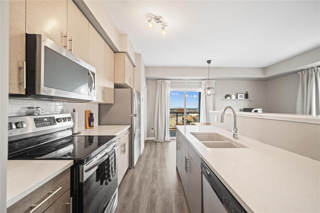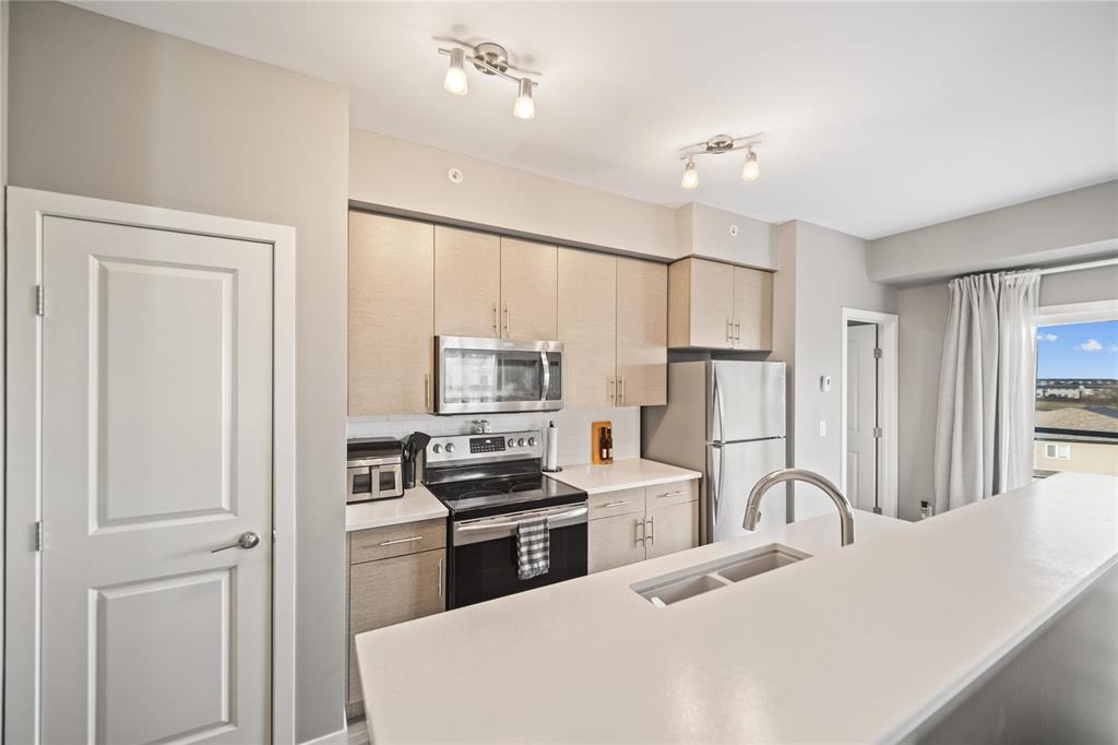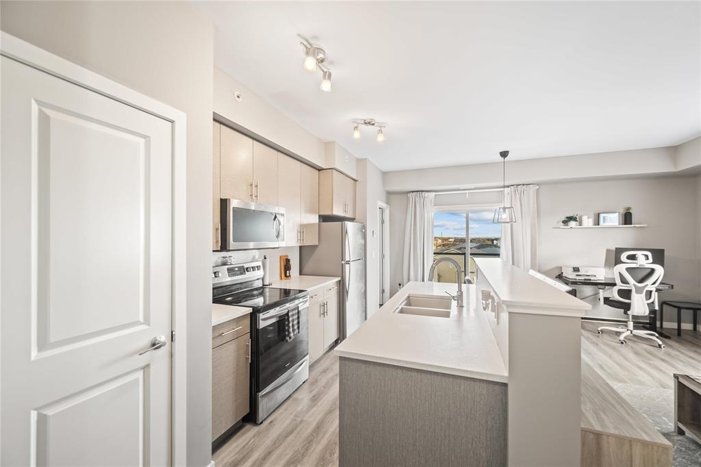 * Showings Start Now. Offers Presented as Received * Welcome to 1418–65 Fiorentino Street, a stunning top-floor corner suite offering style, comfort, and convenience in a sought-after pet-friendly building. With 912 sqft of well-designed living space, this 2-bedroom, 2-bathroom condo combines modern finishes with thoughtful upgrades. The bright open-concept layout features an island kitchen complete with stainless steel appliances & quartz countertops, and plenty of natural light throughout. The spacious primary suite includes a walk-in closet and private ensuite with walk-in shower, while the second bedroom and full bathroom provide ideal flexibility for guests or a home office. Enjoy the added benefit of a large in-suite laundry room with extra storage, plus two dedicated parking stalls. Relax on your private balcony overlooking the quiet surroundings, or take advantage of building amenities like the elevator, dog wash, and outdoor seating area. Conveniently located near public transit, Costco, Kildonan Place, several parks - including one just across the street - and the Transcona Trail - this one checks every box for modern condo living! Don't delay - book your viewing today!