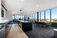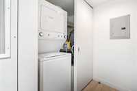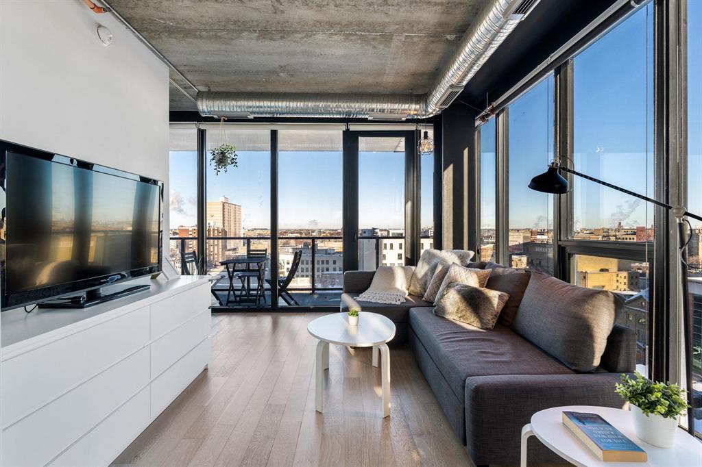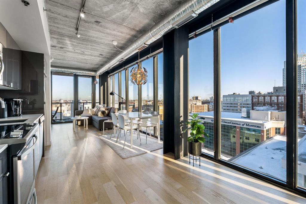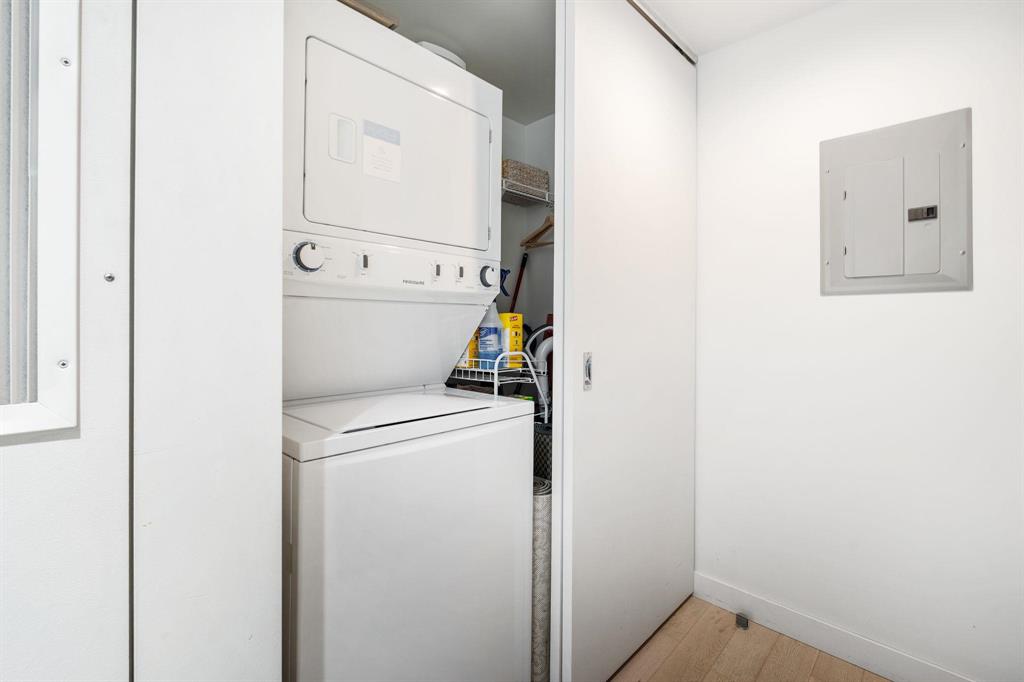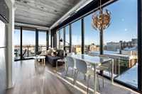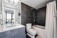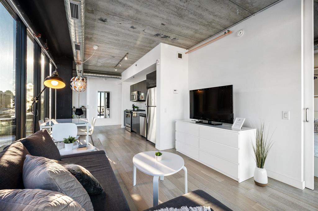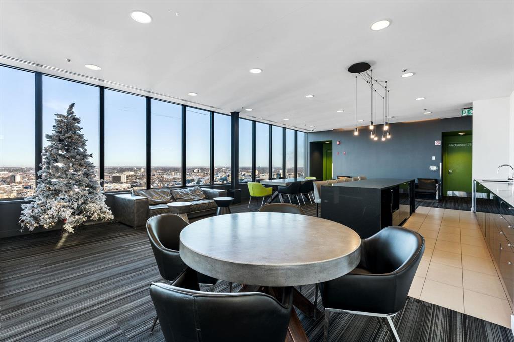 S.S now. Enjoy elevated urban living in this stylish 2-bedroom, 2-bathroom, 822 sq ft condo located on the 10th floor in the heart of downtown. Expansive panoramic windows maximize natural light and showcase impressive city views, creating a bright and modern atmosphere throughout. The open-concept living and kitchen area offers a clean, contemporary design with soft-close cabinetry and quartz countertops. The smart split-bedroom layout provides excellent privacy, with the primary suite featuring a deluxe ensuite and stunning skyline views, while the second bedroom is equally bright and inviting. Both bathrooms are finished with porcelain tile, quartz counters, and sleek modern fixtures. In-suite laundry adds everyday convenience. Additional highlights include pet-friendly living, storage conveniently located on the 5th floor, garbage chutes on every floor, and premium lifestyle amenities such as a private theatre, common lounge with kitchen and pool table, and a spectacular outdoor penthouse patio. Refined, modern city living at its best. Come and experience it for yourself.