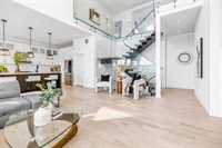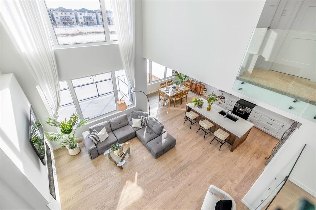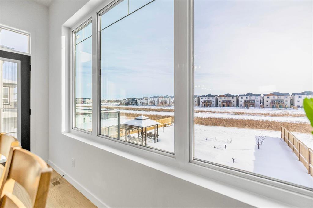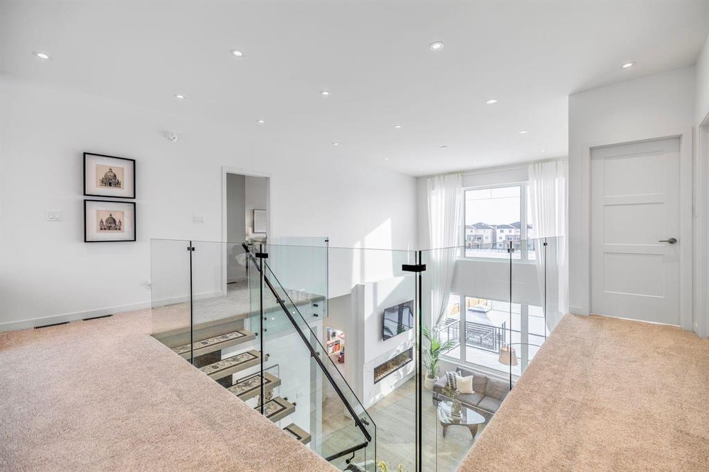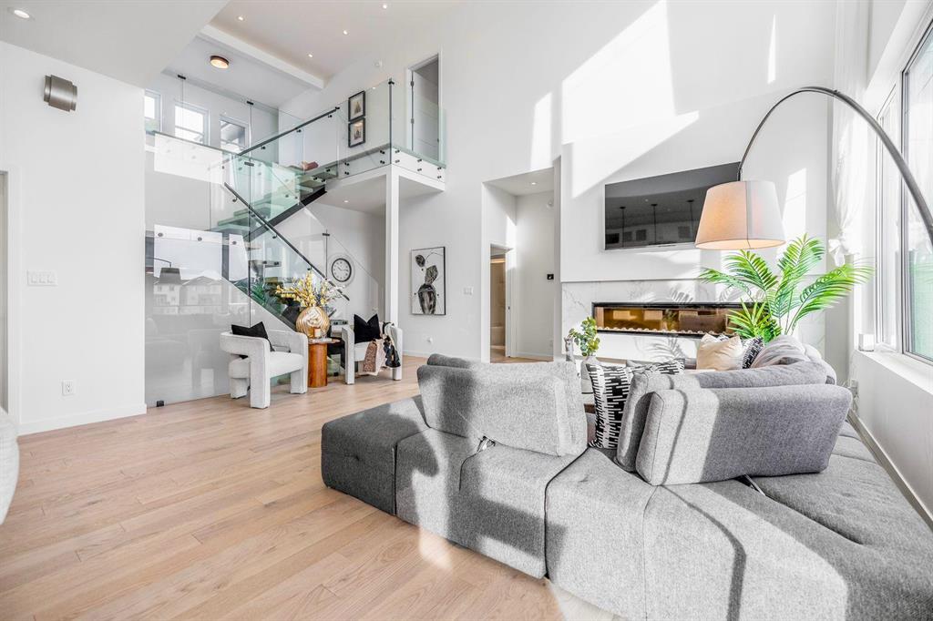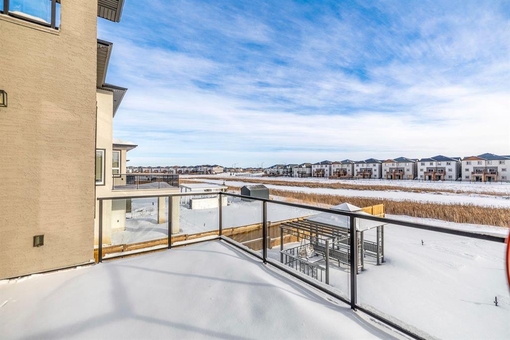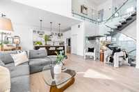 This stunning custom-built 2-storey walkout sits right on the lake and is loaded with upgrades. This Huntington home blends luxury with function. It features 4 bdrm, a loft and 3 bath. A main-floor bed/bath combo, customed kitchen with lots of storage cabinets and extended island, 20' open to below great room with tile-facing fireplace and a main floor deck. Wood flooring all through the main floor. Massive large windows bring tons of natural lights. Sleek custom glass railings with wood and metal accents lead to upper and lower levels. The south-facing primary bedroom with access to a covered balcony, including a 5pcs deluxe ensuite and a walk-in closet with large window. Additional two spacious bedrooms, a 5pcs bath and the loft complete the upper level. Upgrades includes steel beam, 10' ceiling for each level, extra pot lights, quartz countertop all through, triple attached garage and more.