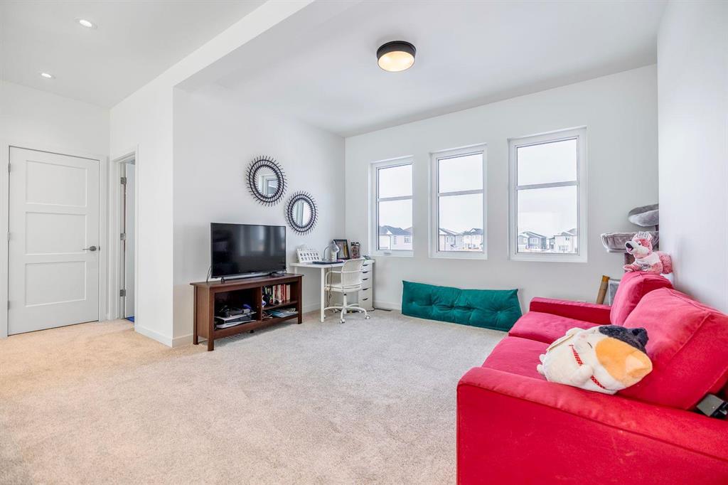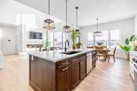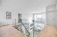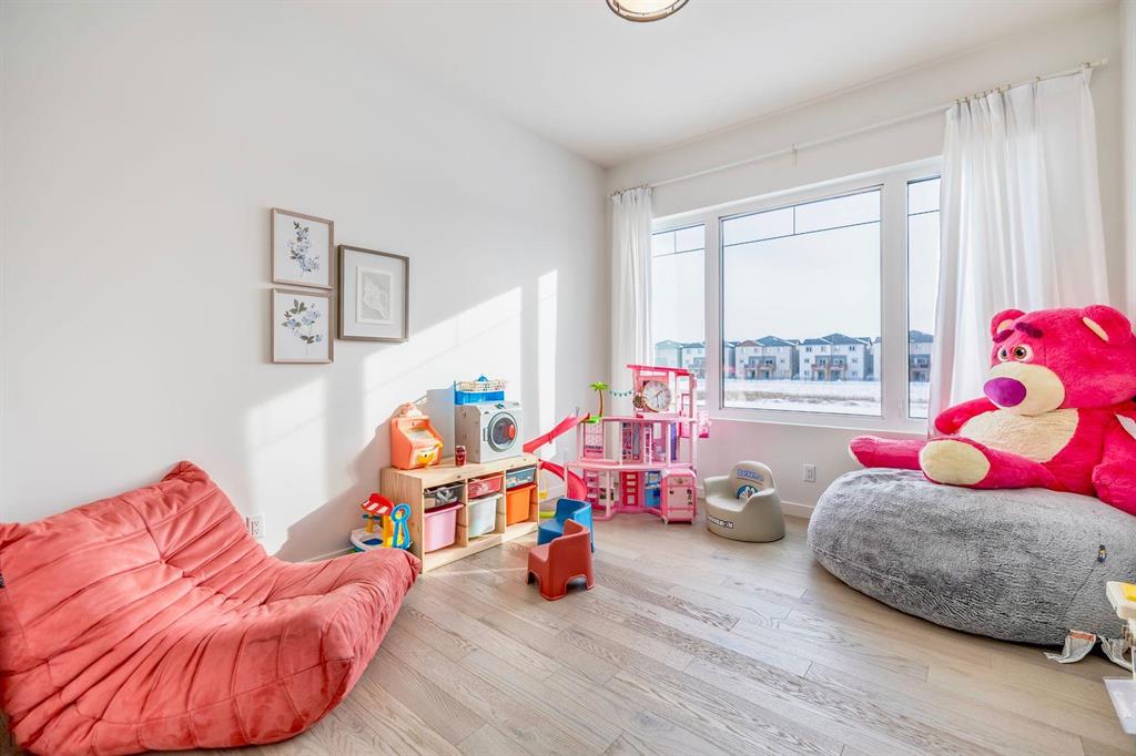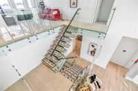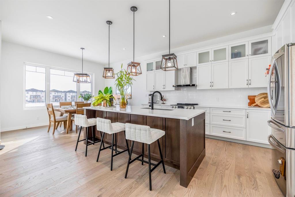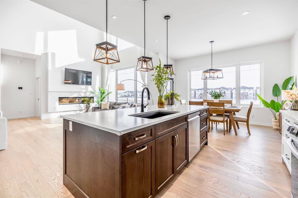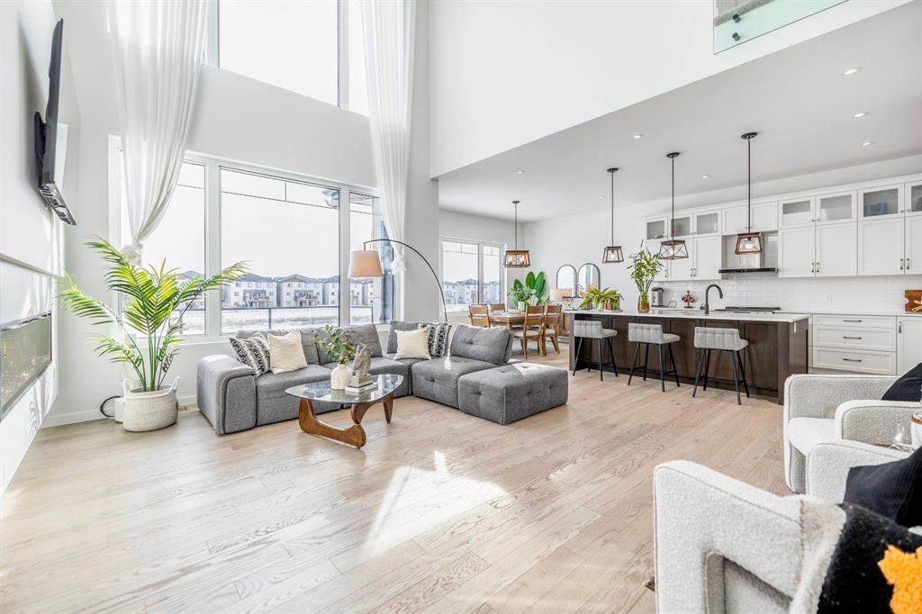 This stunning custom-built 2-storey walkout sits right on the lake and is loaded with upgrades. This Huntington home blends luxury with function. It features 4 bdrm, a loft and 3 bath. A main-floor bed/bath combo, customed kitchen with lots of storage cabinets and extended island, 20' open to below great room with tile-facing fireplace and a main floor deck. Wood flooring all through the main floor. Massive large windows bring tons of natural lights. Sleek custom glass railings with wood and metal accents lead to upper and lower levels. The south-facing primary bedroom with access to a covered balcony, including a 5pcs deluxe ensuite and a walk-in closet with large window. Additional two spacious bedrooms, a 5pcs bath and the loft complete the upper level. Upgrades includes steel beam, 10' ceiling for each level, extra pot lights, quartz countertop all through, triple attached garage and more.