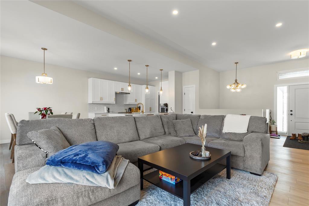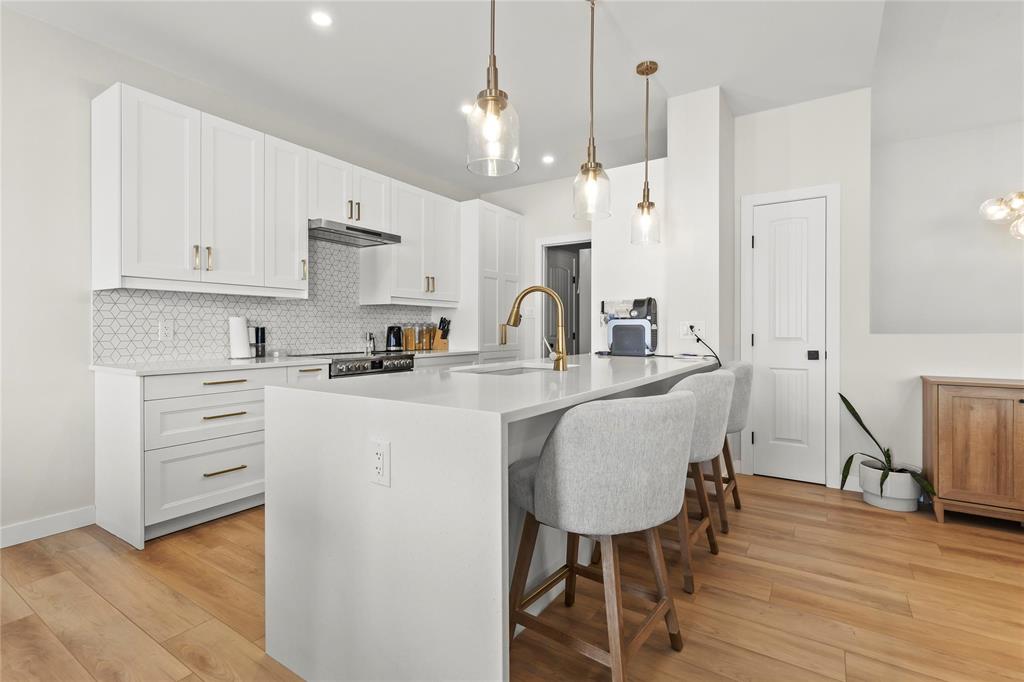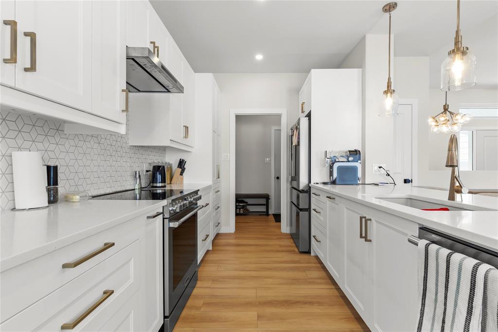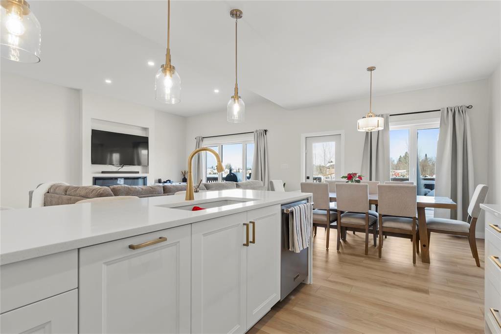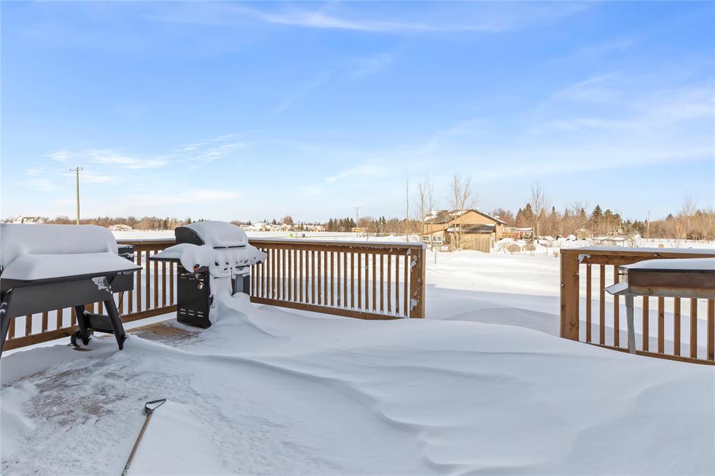 New in 2025 award winning floor plan with exceptional attention to detail includes concrete driveway and landscaped yard. Galley style kitchen with oversized bar top perfect for 4-5 barstools features a quartz waterfall island, tiled backsplash, and TWO PANTRIES! Family sized dining area approx 11 x 12 with glass garden door to oversized 22' deck with privacy wall and gas line. The primary suite offers a spacious walk-in closet and 4 piece ensuite includes HEATED FLOORS & 2 SINKS with tiled shower with glass door to be installed. Living room with electric fireplace and 10' CEILINGS, two additional bedrooms (one with walk-in closet), 4 piece main bath with quartz counters, and convenient mudroom located off of double attached INSULATED 24' garage and concrete driveway. Full ICF basement with oversized windows. LVP flooring throughout, and feature 10' ceiling. Exterior to be completed with stone and acrylic stucco. Conveniently located on a 4-lane highway, just minutes to Steinbach or Winnipeg, with full hospital and ER access.