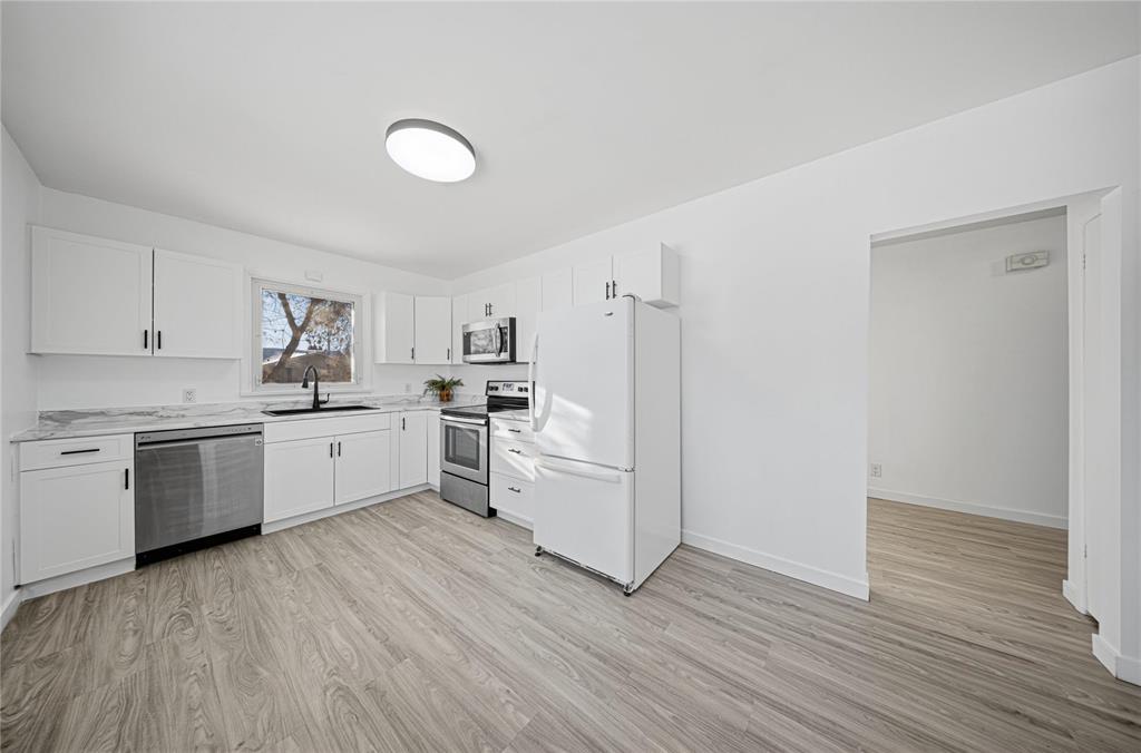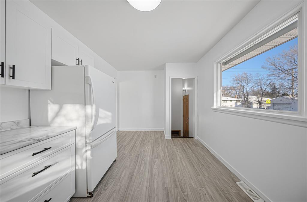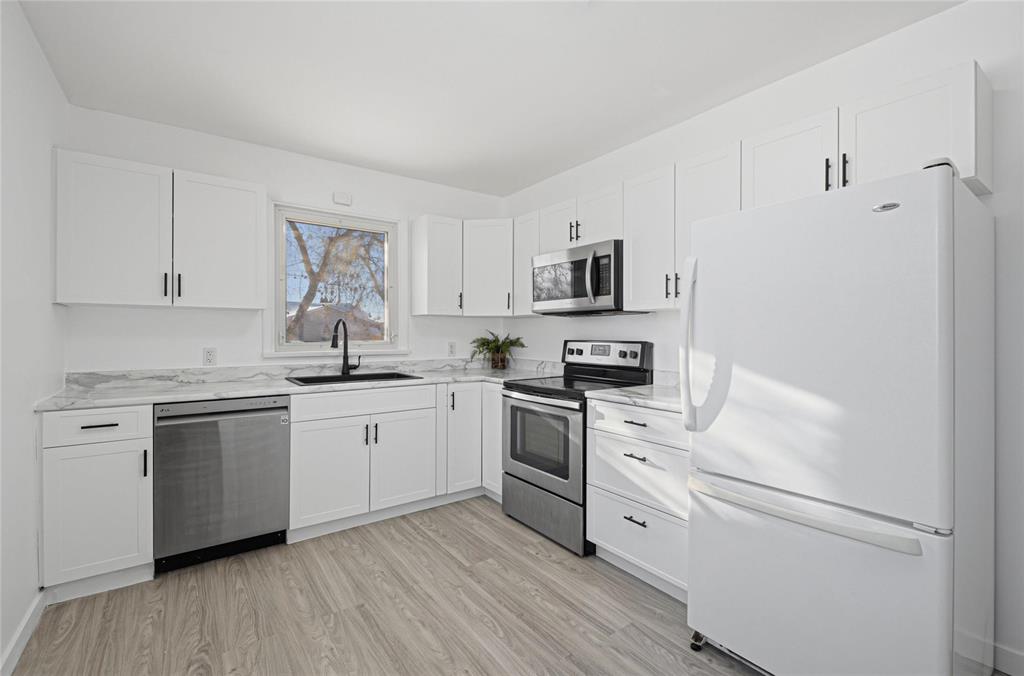 This fully remodelled 4 bed, 2 bath East Kildonan bungalow is a true gem, ideally located within walking distance to all three levels of school, Concordia Pool, Concordia Hospital, and everyday amenities. Situated on a corner lot, this home also offers a convenient side entrance. Step inside to LVP flooring throughout the main level and a bright, spacious living room with a south facing picture window for an abundance of natural light. New Blinds 01/22 The updated eat in kitchen features ample counter and cabinet space and pots and pan drawers.