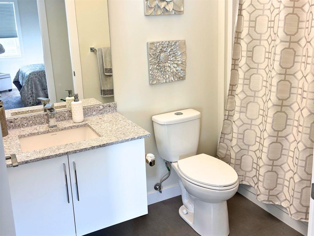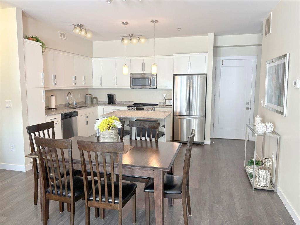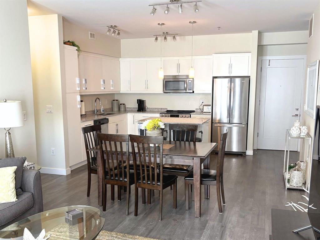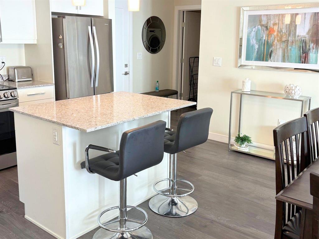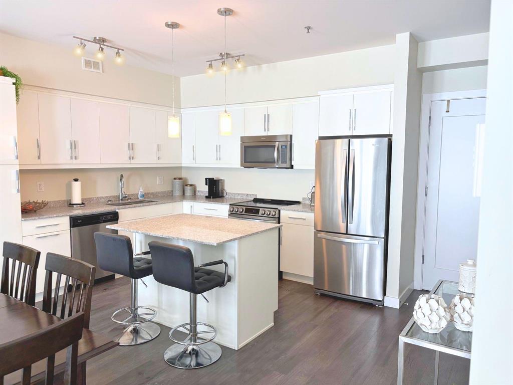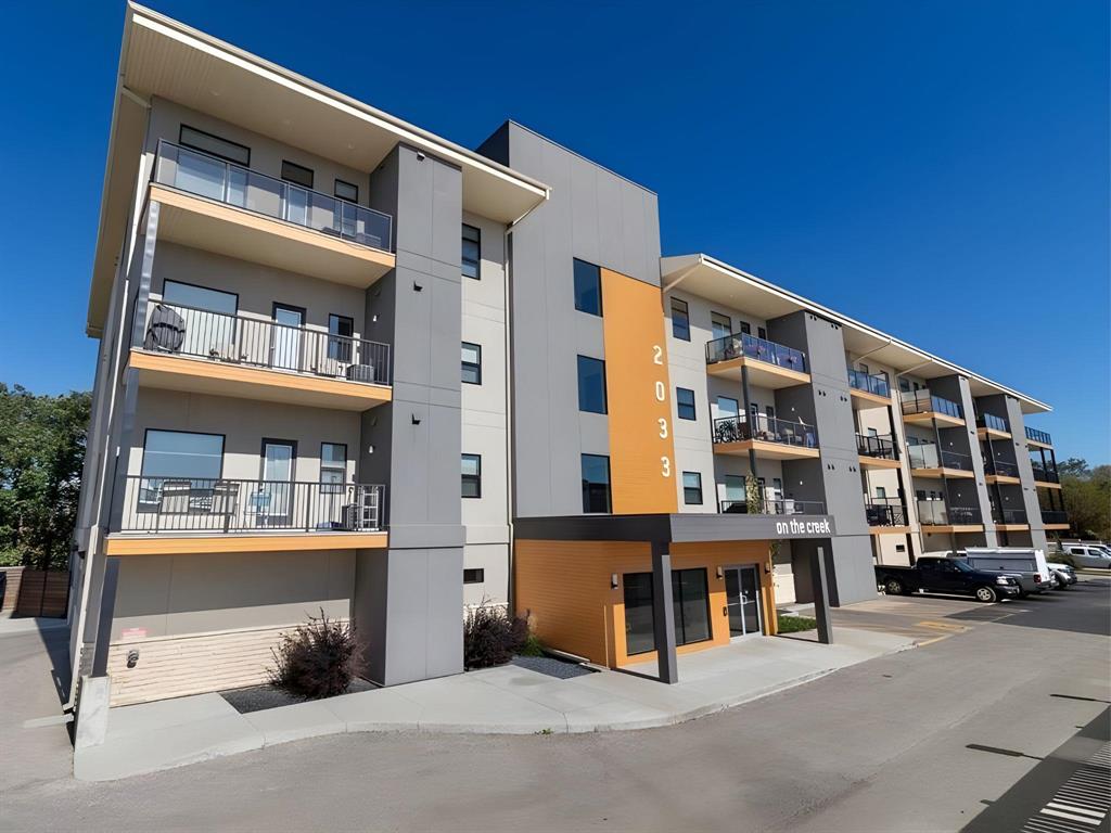 Located at the sought after 2033 On The Creek! Suite 312 is a south-facing 2 bedroom, 2 full bath unit with indoor parking stall. The open concept kitchen features stone counters, soft-close doors & drawers, very nice island and kitchen space opens to large family/entertaining area complete with gorgeous floors and access to the large balcony! Big enough for table and chairs and lounger, and not facing directly over the strip mall parking lot. Tons of natural sun flows through! The large master bedroom boasts a ensuite with walk-in shower and a spacious walk-thru closet. The unit is completed with a good-sized second bedroom and 4-pc bath. Central AC, ample storage/utility room, high ceilings and quality finishes throughout. Truly one of the nicest units in the building. In-suite laundry, heated indoor parking, plenty of guest parking, private owner-access patio and all utilities are included in the condo fees. Close to shopping and restaurants! More bonuses include creekside patio, parkade, Bunn's Creek walking path right out your door and so much more!!